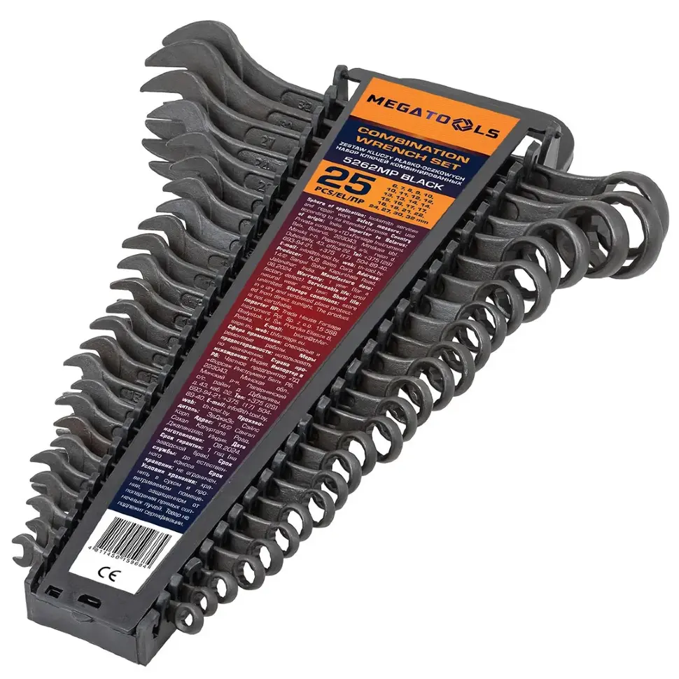 Ключи комбинированные, набор 25пр. (6-19, 21, 22, 24, 27, 30, 32мм) MEGATOOLS MT-5262MP BLACK