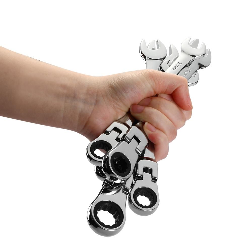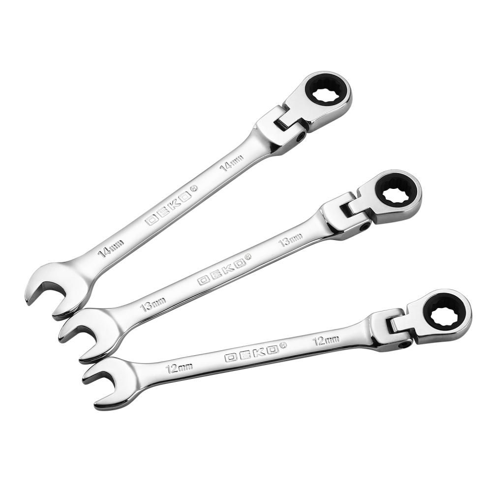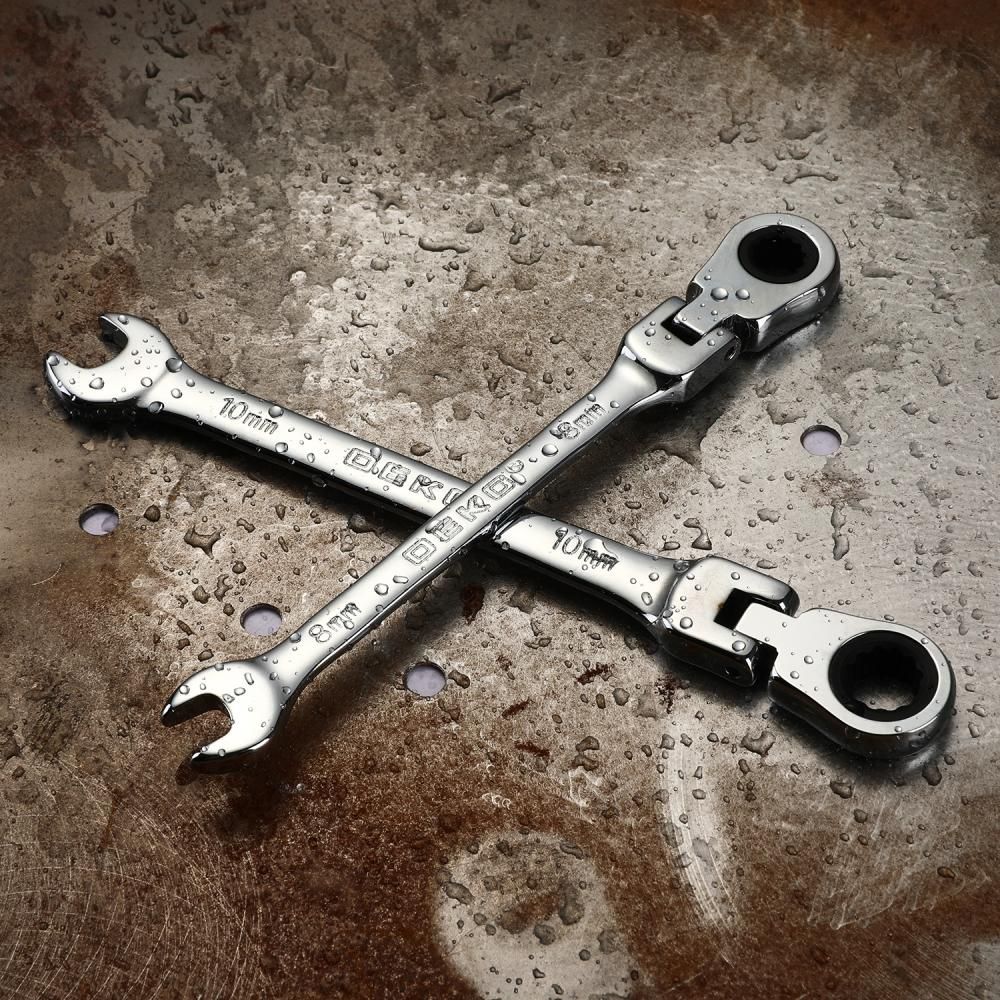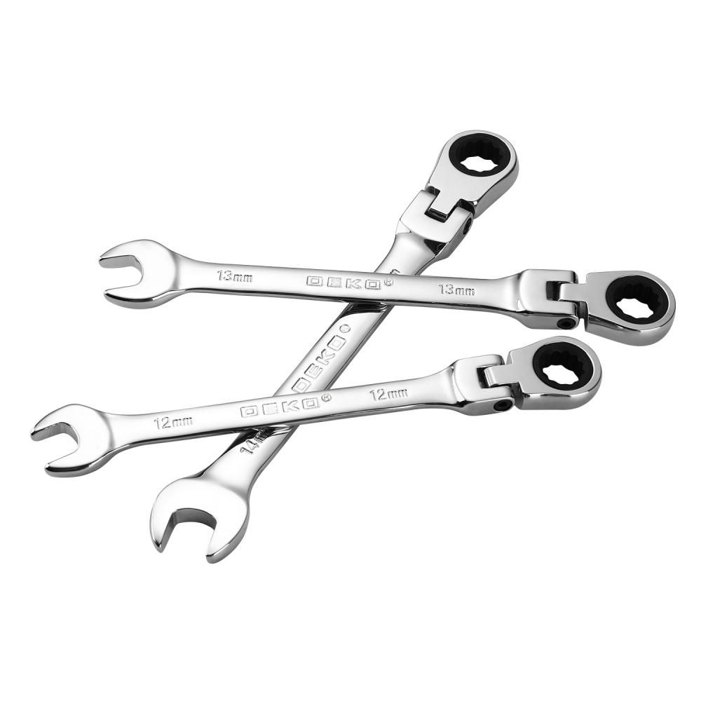 Ключи комбинированные трещоточные шарнирные в наборе DEKO RW02 8-17 мм, 6 предметов: