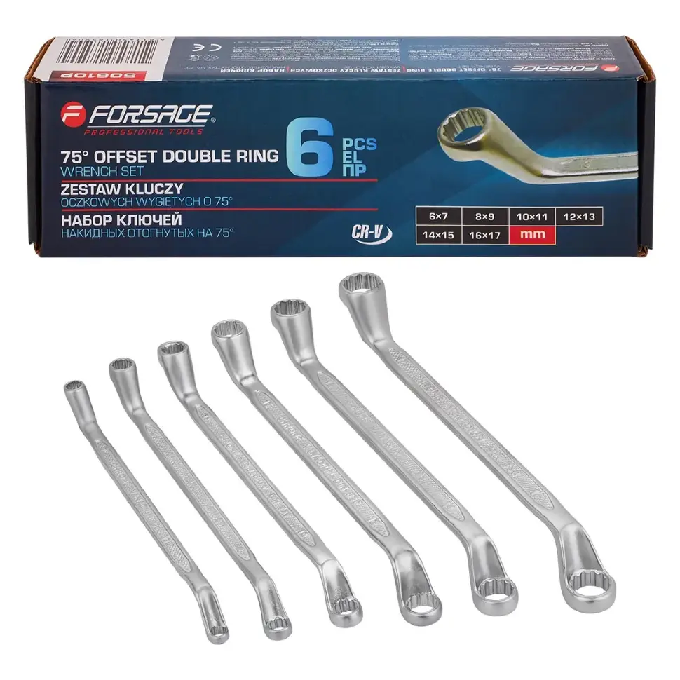 Ключи накидные отогнутые на 75град., набор 6пр. (6х7, 8х9, 10х11, 12х13, 14х15, 16х17мм) Forsage F-50610P