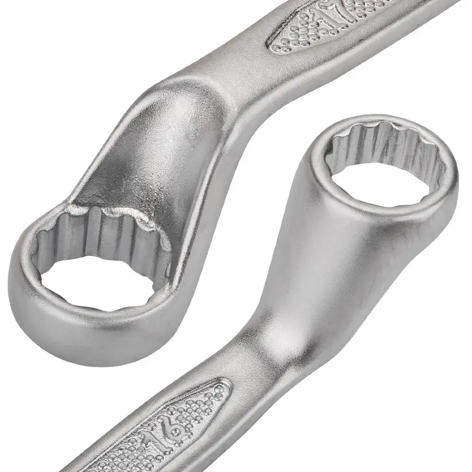 Изготовлены из прочной хромованадиевой стали (CrV), устойчивой к износу и механическим нагрузкам. Каждый ключ имеет два рабочих размера, что делает набор универсальным для обслуживания автомобилей, техники и выполнения монтажных работ.