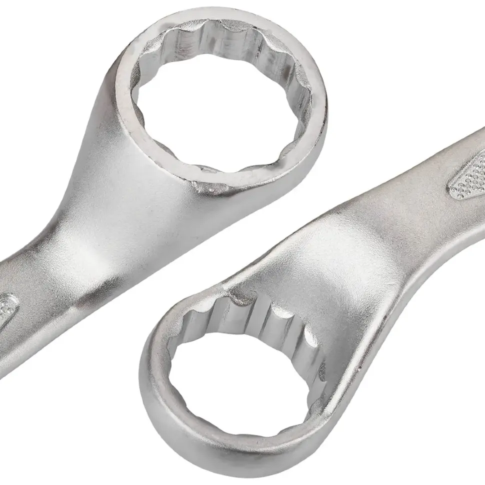 Ключи накидные отогнутые на 75°, набор 6 пр. RockFORCE RF‑50610P — удобный комплект для работы с крепежом в труднодоступных местах. Благодаря изгибу на 75° обеспечивается лёгкий доступ к гайкам и болтам, расположенным в углублениях или под углом. Каждый ключ имеет два рабочих размера, что делает набор универсальным и компактным.