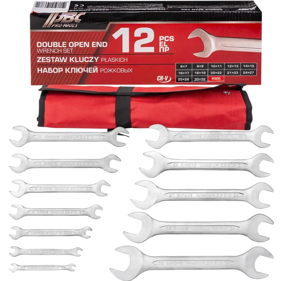 Ключи рожковые, набор 12пр. (6х7, 8х9, 10х11, 12х13, 14х15, 16х17, 18х19, 20х22, 21х23, 24х27, 25х28, 30х32мм) JBC JBC-5122P