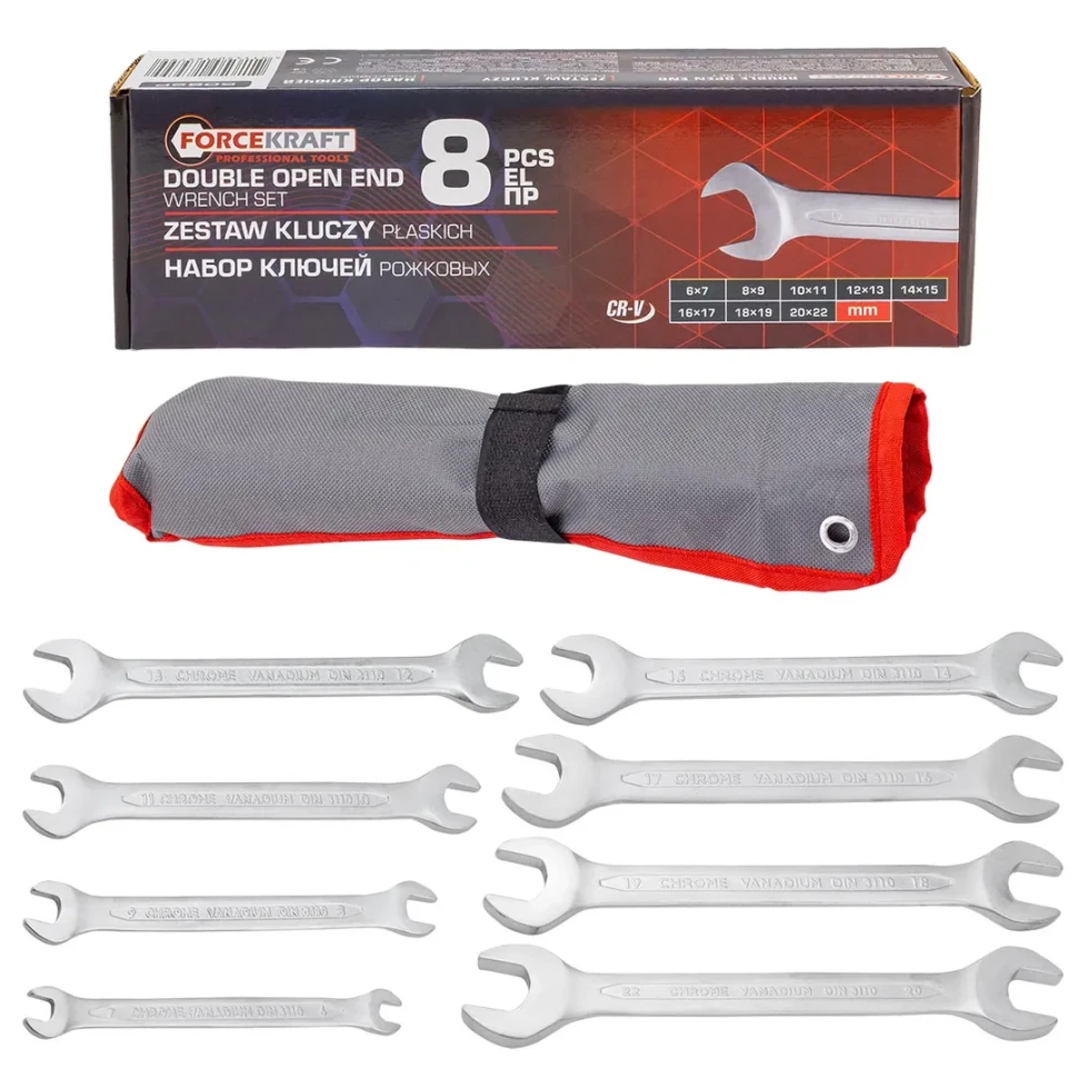 Ключи рожковые, набор 8пр. (6х7, 8х9, 10х11, 12х13, 14х15, 16х17, 18х19, 20х22мм) FORCEKRAFT FK-5089P