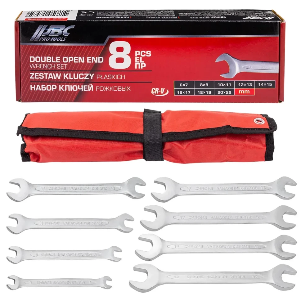 Ключи рожковые, набор 8пр. (6х7, 8х9, 10х11, 12х13, 14х15, 16х17, 18х19, 20х22мм) JBC JBC-5089P