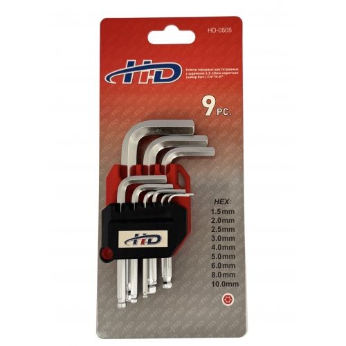 Ключи торцевые шестигранные c шариком 1,5-10мм короткие (набор 9шт.) CrV H-D HD-0505