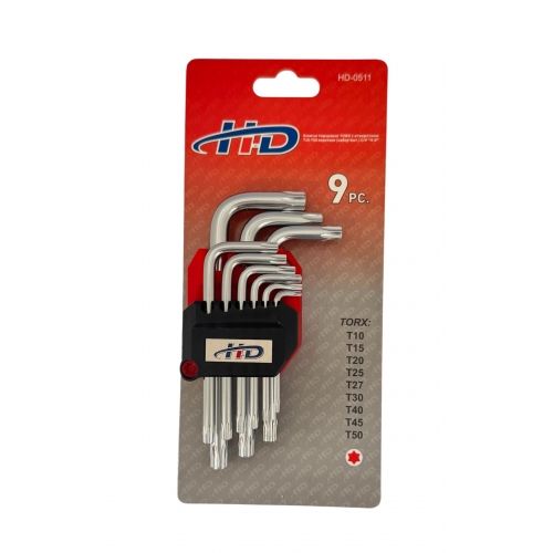 Ключи торцевые TORX с отверстием T10-T50 удлиненные (набор 9шт.) CrV H-D HD-0511