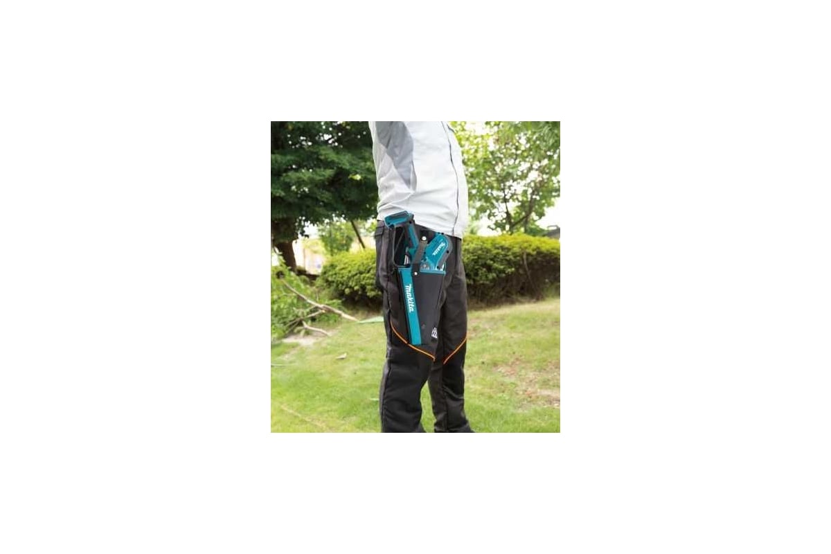 Чехол для переноски аккумуляторной цепной пилы Makita DUC150 с креплением к ремню. Корпус пилы удобно входит в комплект поставки и имеет специальный ремень для предотвращения падения. Внутри армирован алюминиевыми пластинами, предотвращающими поломку