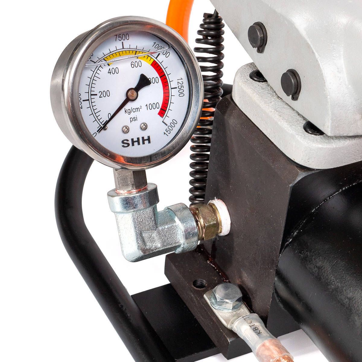 - Ножной рычаг принудительного сброса давления и встроенный манометр обеспечивают полное управление помпой во время работы