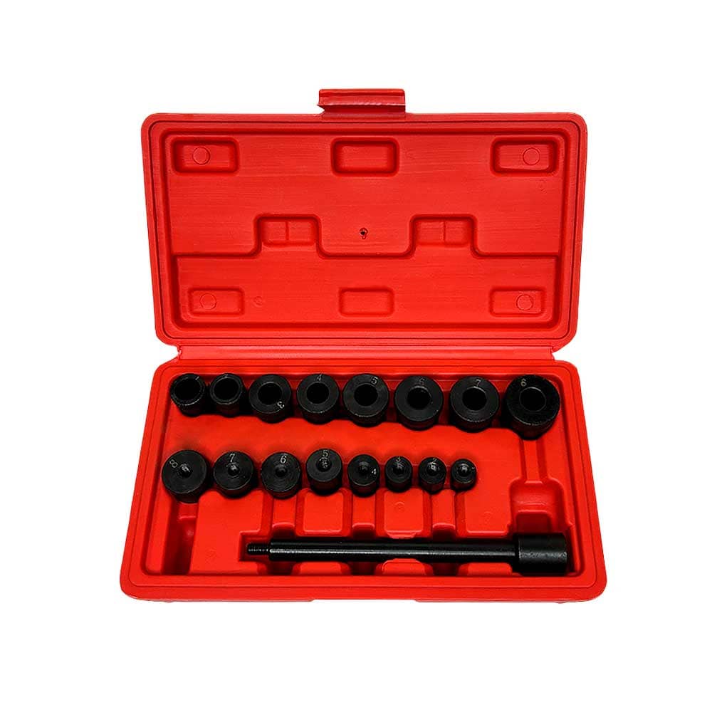 В комплект входят набор втулок разных диаметров, рукоятка длиной 230 мм, конус с диапазоном 19,5–30 мм и удобный пластиковый кейс — всё для эффективной работы в автосервисе.