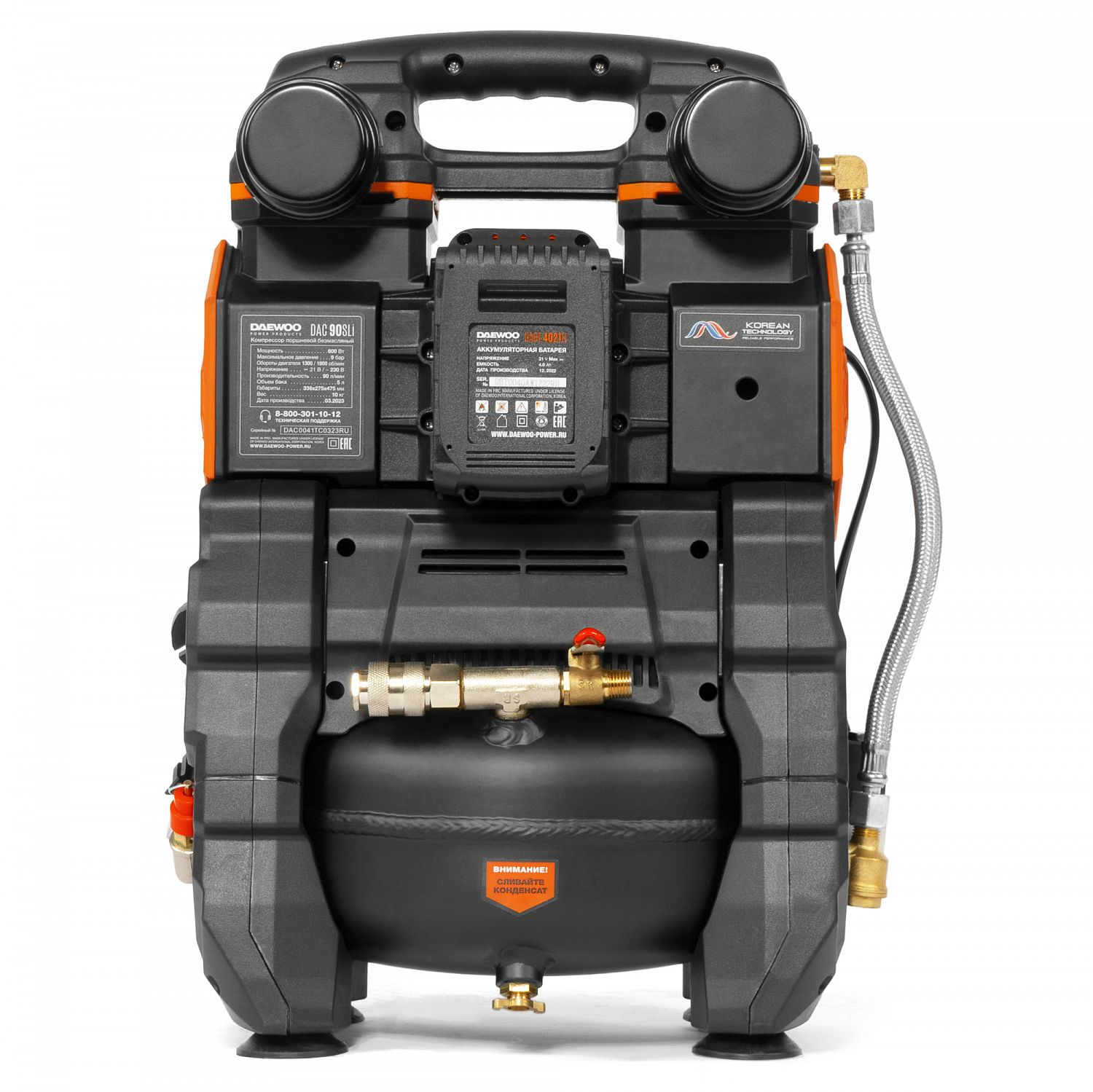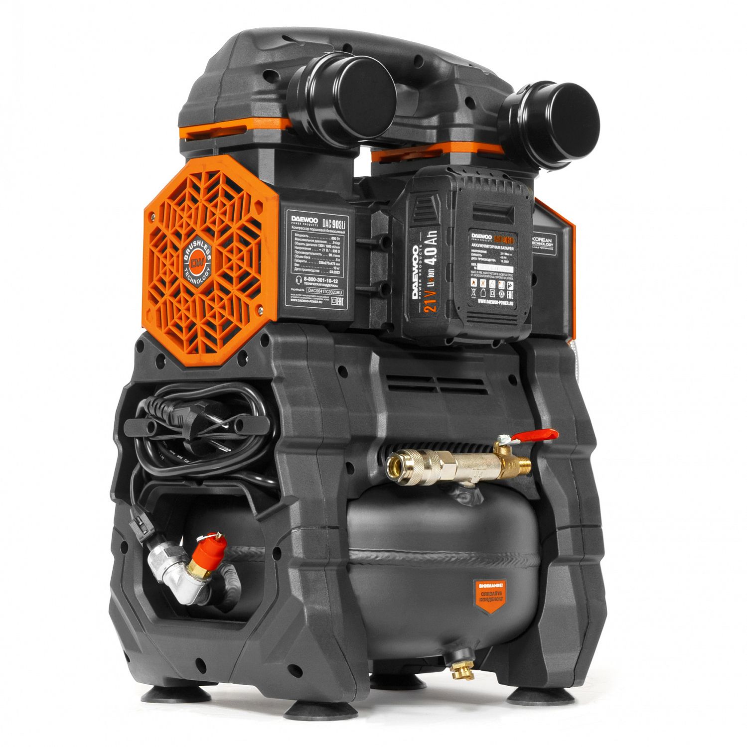 - Бесщеточный двигатель DAEWOO. Высокопроизводительный DUAL MODE двигатель, мощностью 600 Вт и изменяемой частотой вращения 1300/1800 об/мин специально разработан для воздушных компрессоров и обладает высоким рабочим ресурсом.