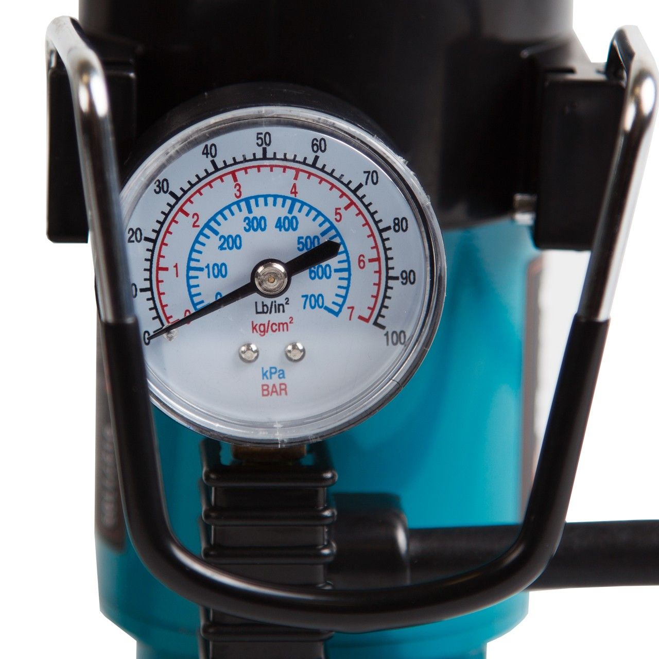 - Для удобства использования и защиты встроенного манометра на верхней части насоса расположена металлическая скоба.