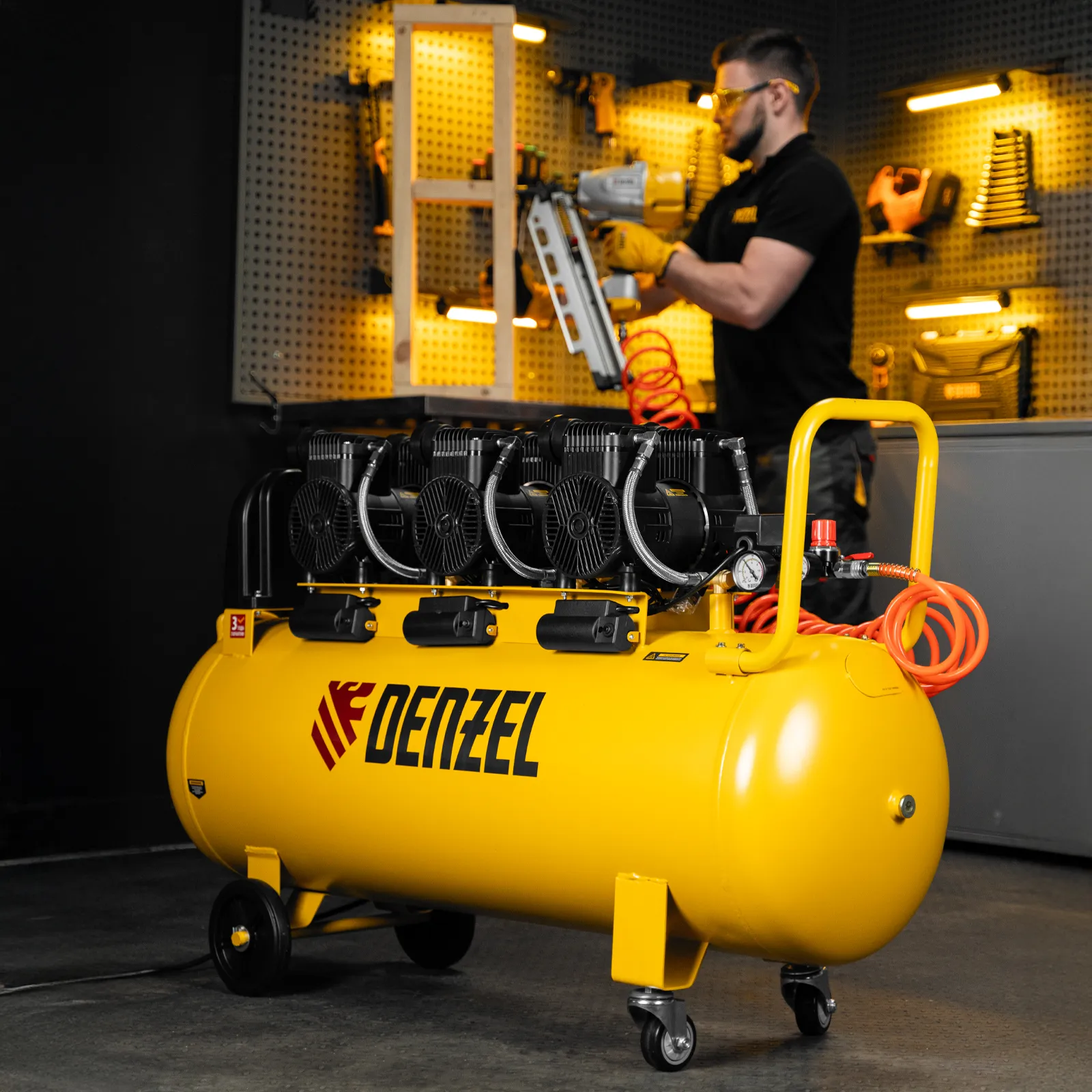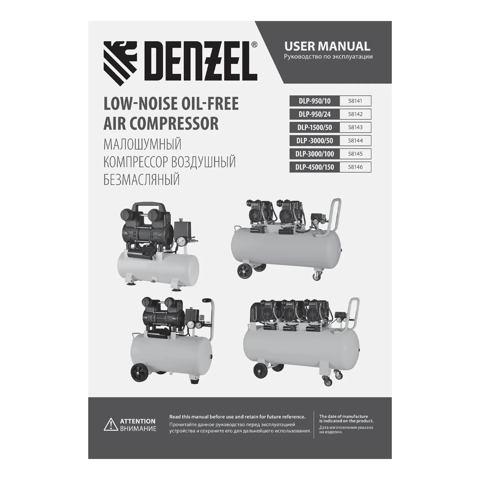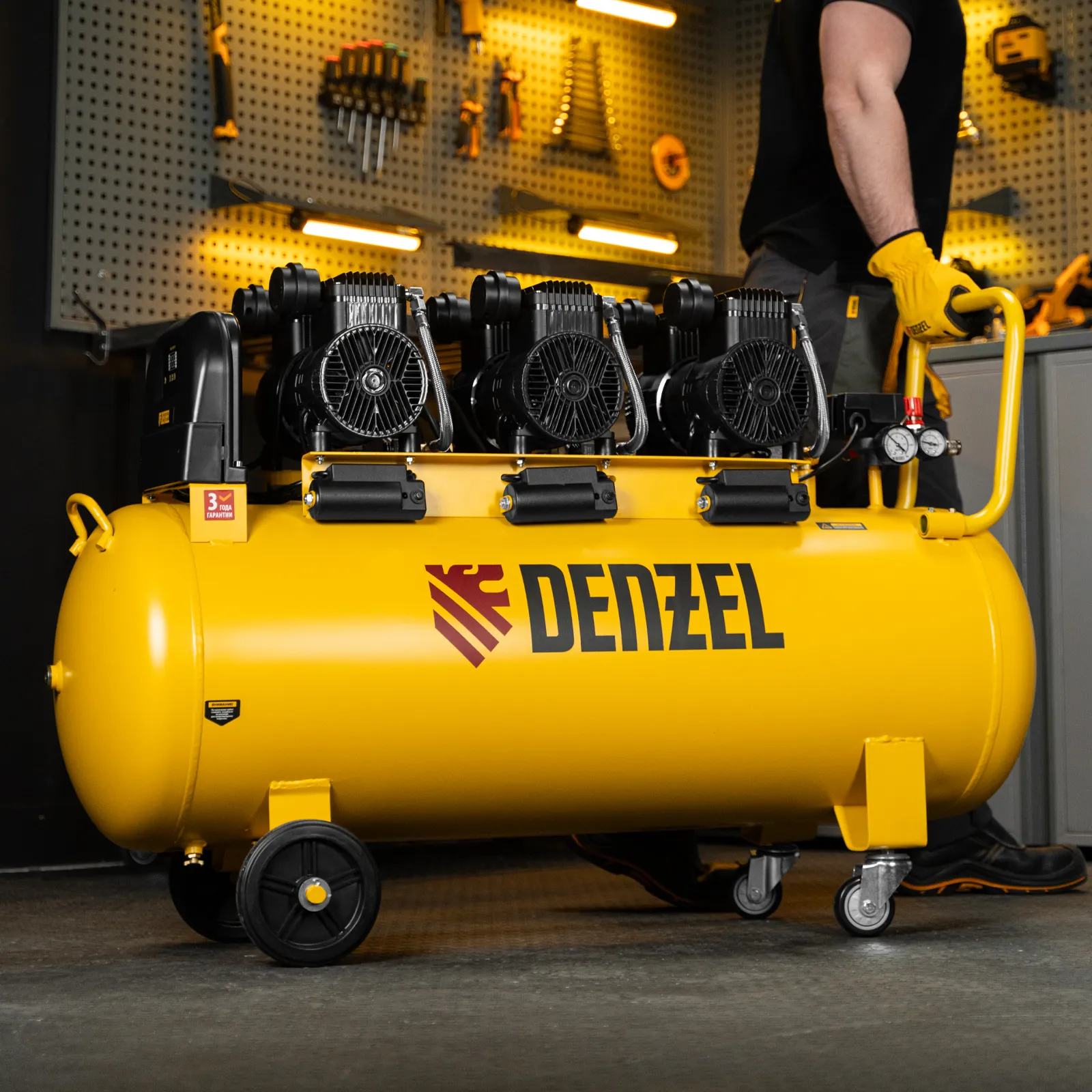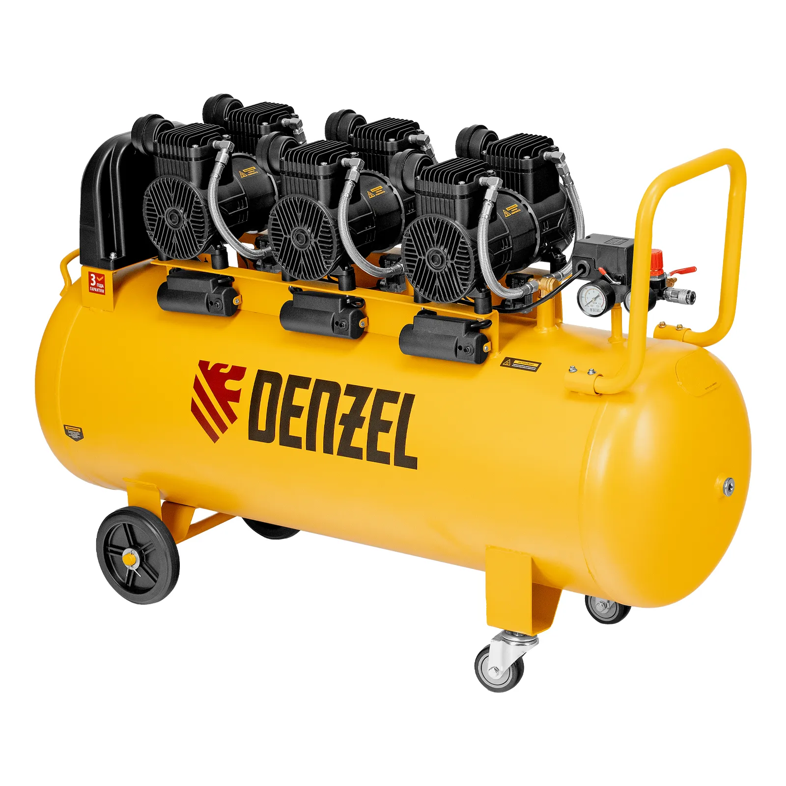 Компрессор безмасл. малошумн. DLP-4500/150, 4,5 кВт, 3х1,5 кВт,150 л, 2850 об/мин,750 л/мин DENZEL 58146