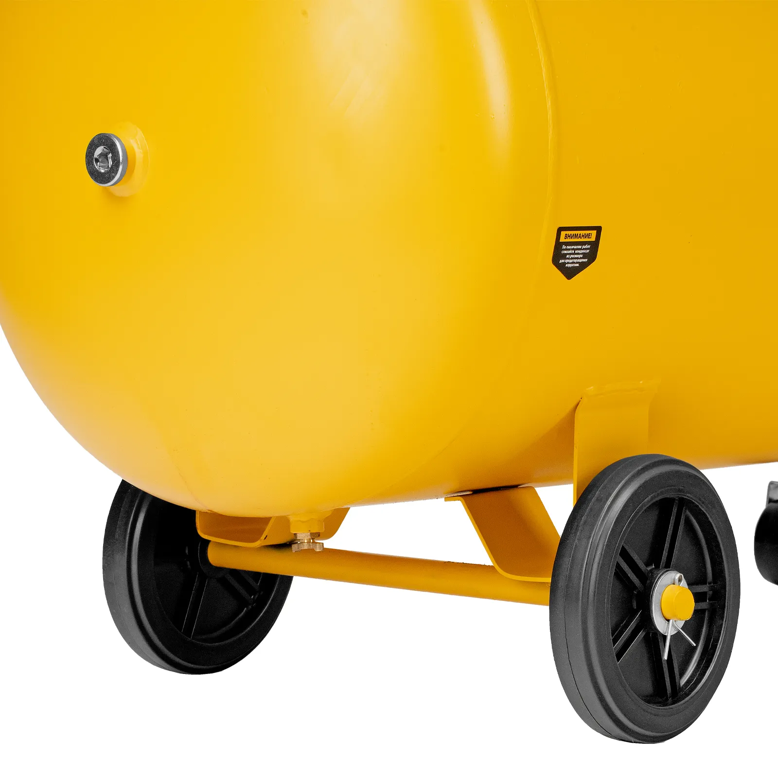 - Мобильность — 4 колеса, в том числе 2 поворотных, и транспортировочная рукоятка упрощают перемещение компрессора по рабочей зоне.