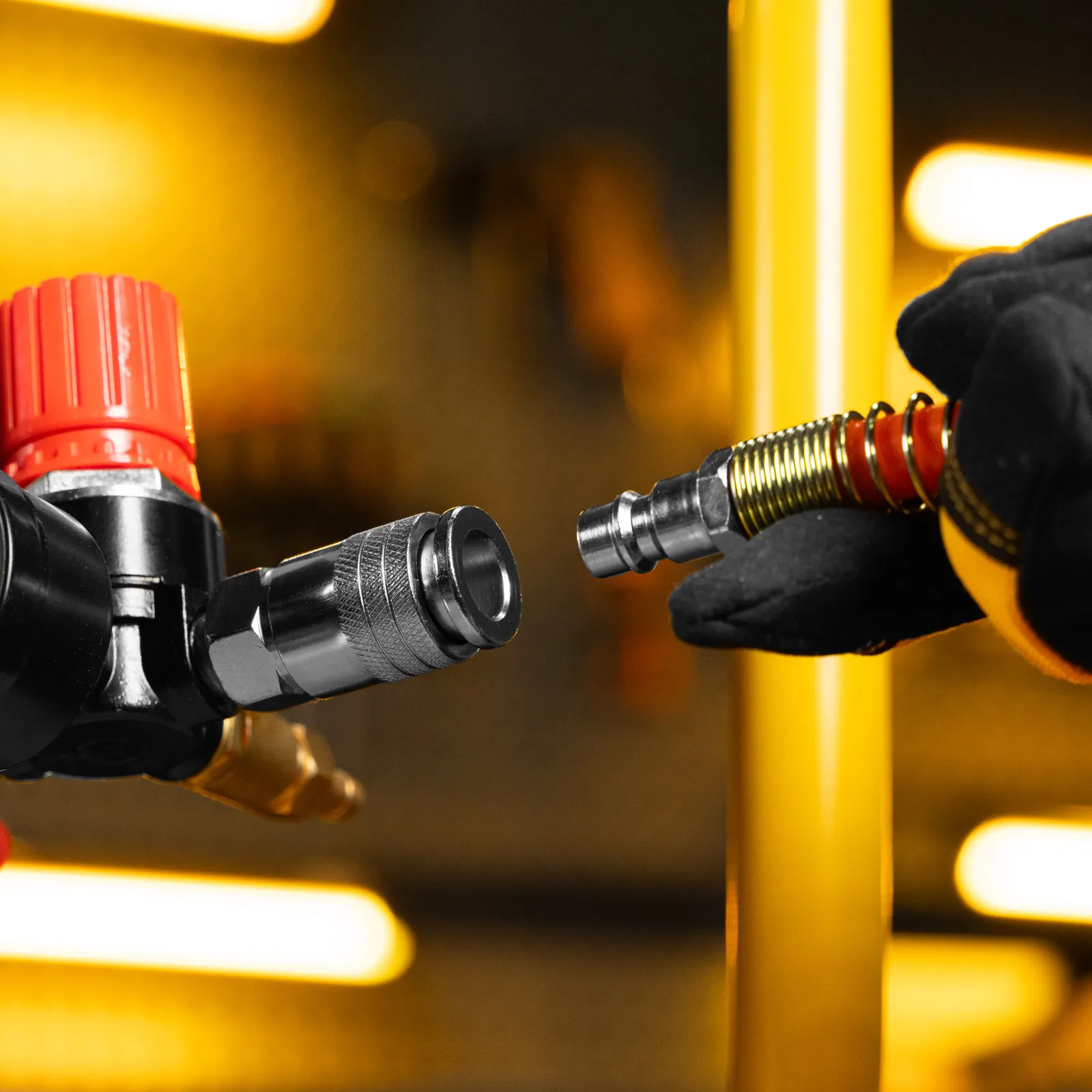 - Простое присоединение — благодаря быстросъемному коннектору подключение пневмоинструмента не занимает много времени.