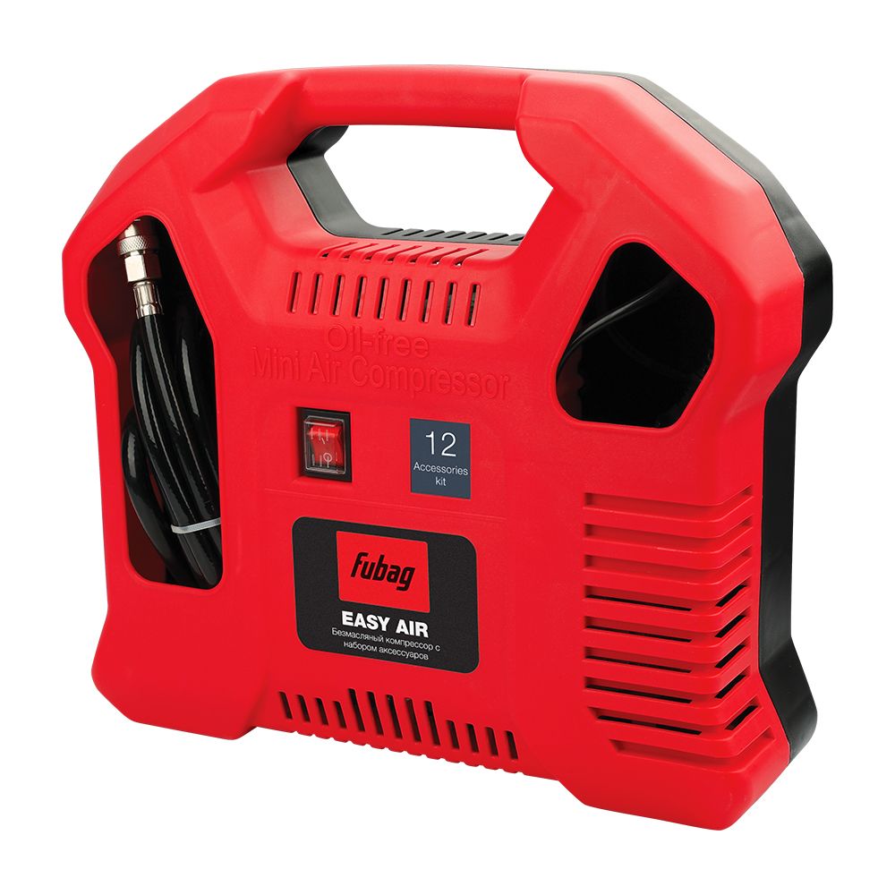 - Набор FUBAG Easy Air — это мобильный комплект на базе коаксиального безмасляного компрессора (без ресивера).