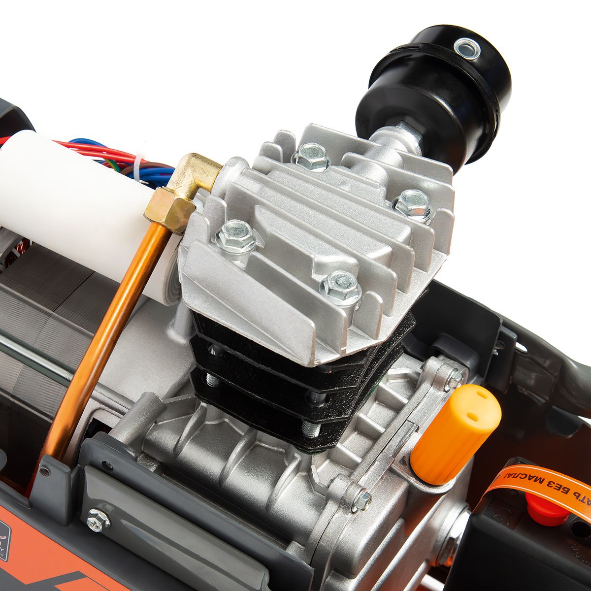 ✔ Эффективная теплоотдача – цилиндр компрессора выполнен из цельнолитого чугуна с алюминиевой крышкой. Ребра теплоотдачи увеличенного размера эффективно отводят тепло и увеличивают срок непрерывной работы до 50%.