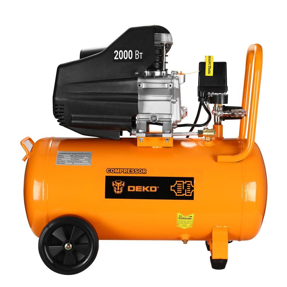 - Компрессор воздушный поршневой масляный DEKO DKAC50, 50л ресивер предназначен для выработки сжатого воздуха.