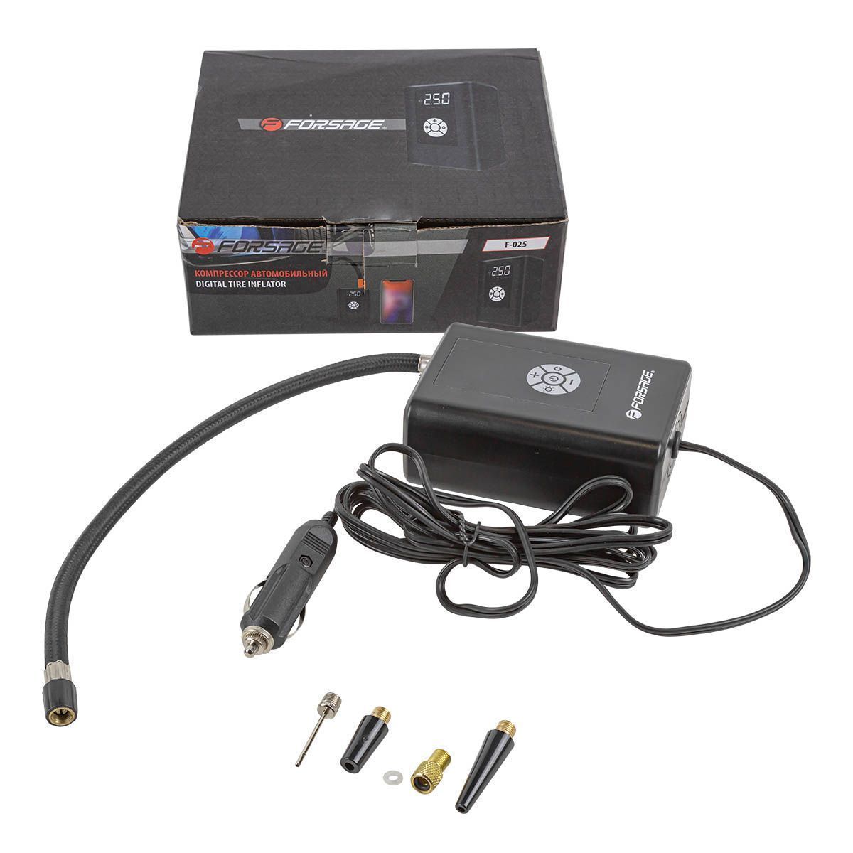 Компрессор поршневой автомобильный с фонарем "FORSAGE" (35л/мин, 15А) 12V ...