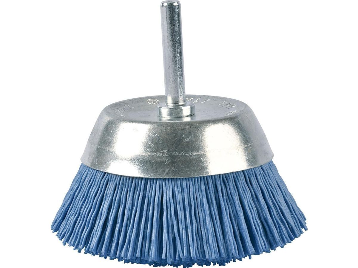 Кордщетка дисковая ''получаша'' стальная витая для УШМ применяется для шлифовки, полирования, зачистки сварочных швов. Форма ''получаша'' обеспечивает хорошую площадь прилегания к поверхности и предназначена для обработки больших плоскостей. Конструкция щетки имеет прочную конструкцию с усиленной гайкой, которая способствует предотвращению деформации изделия. Рабочая часть состоит из скрученной в пучки стальной проволоки. Применяется совместно с угловой шлифовальной машиной с посадочным размером М14. Максимальное количество об/мин 12500, диаметр предмета- 125 мм. Выполнена из стали, которая не подвергается коррозии и окислению.