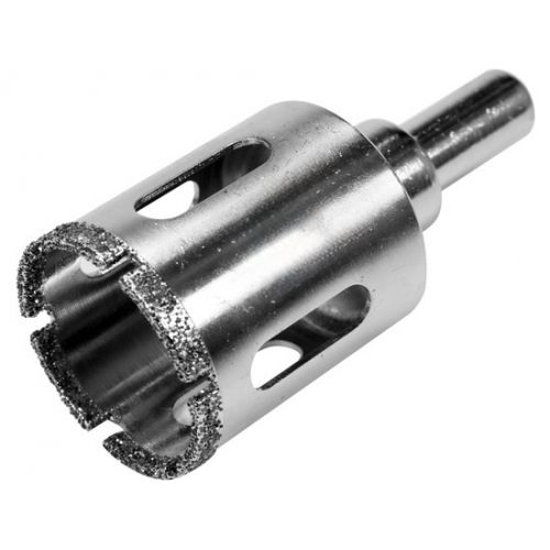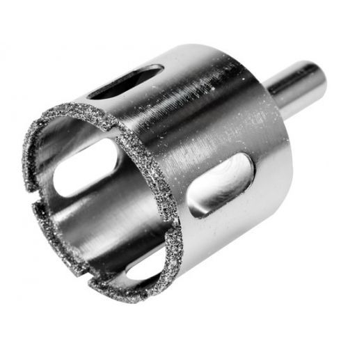 Технические характеристики: Назначение: для сверления стекла и керамической плитки; Тип сверления: безударное, с охлаждением водой; Наружный диаметр, mm: 68; Общая длина, mm: 55; Высота сегмента, mm: 5; Диаметр хвостовика, mm: 8; Тип хвостовика: цилиндрический; Рекомендации: для работы лучше всего использовать аккумуляторную дрель, сочетающую высокий крутящий момент и невысокие обороты. Рекомендуемая частота вращения от 200 до 300 об/мин. Обязательное охлаждение водой. Рекомендуется использовать кондуктор для предотвращения проскальзывания при начальном засверливании; Количество в упаковке, шт: 1; Упаковка: индивидуальный блистер с отверстием под крюк.