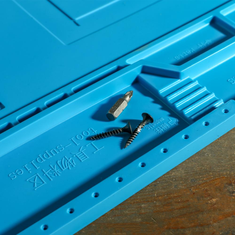 - На коврике есть отсеки для размещения инструмента и хранения мелких деталей.