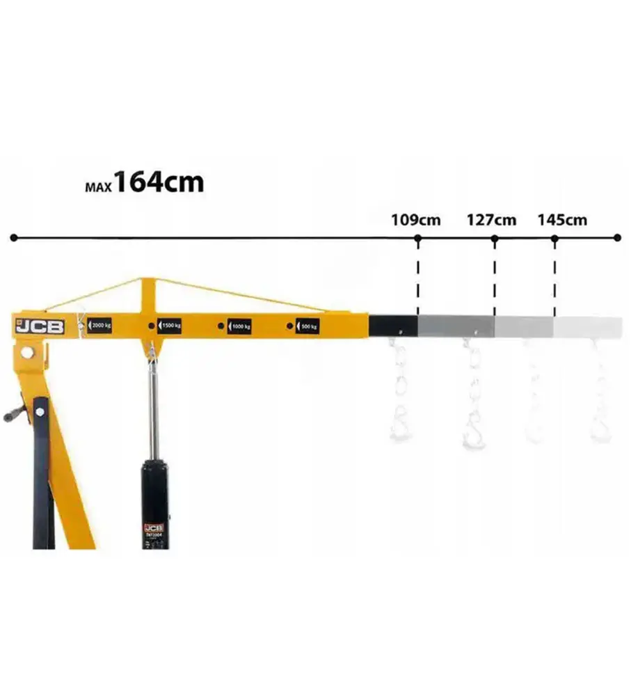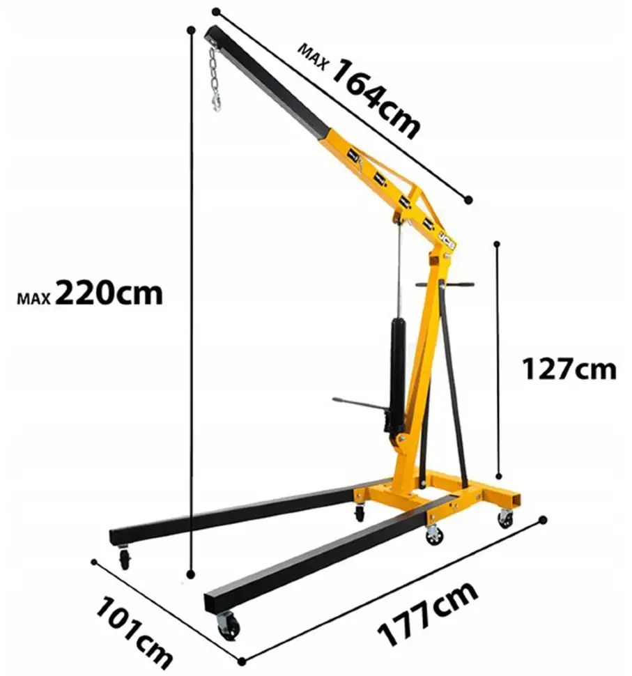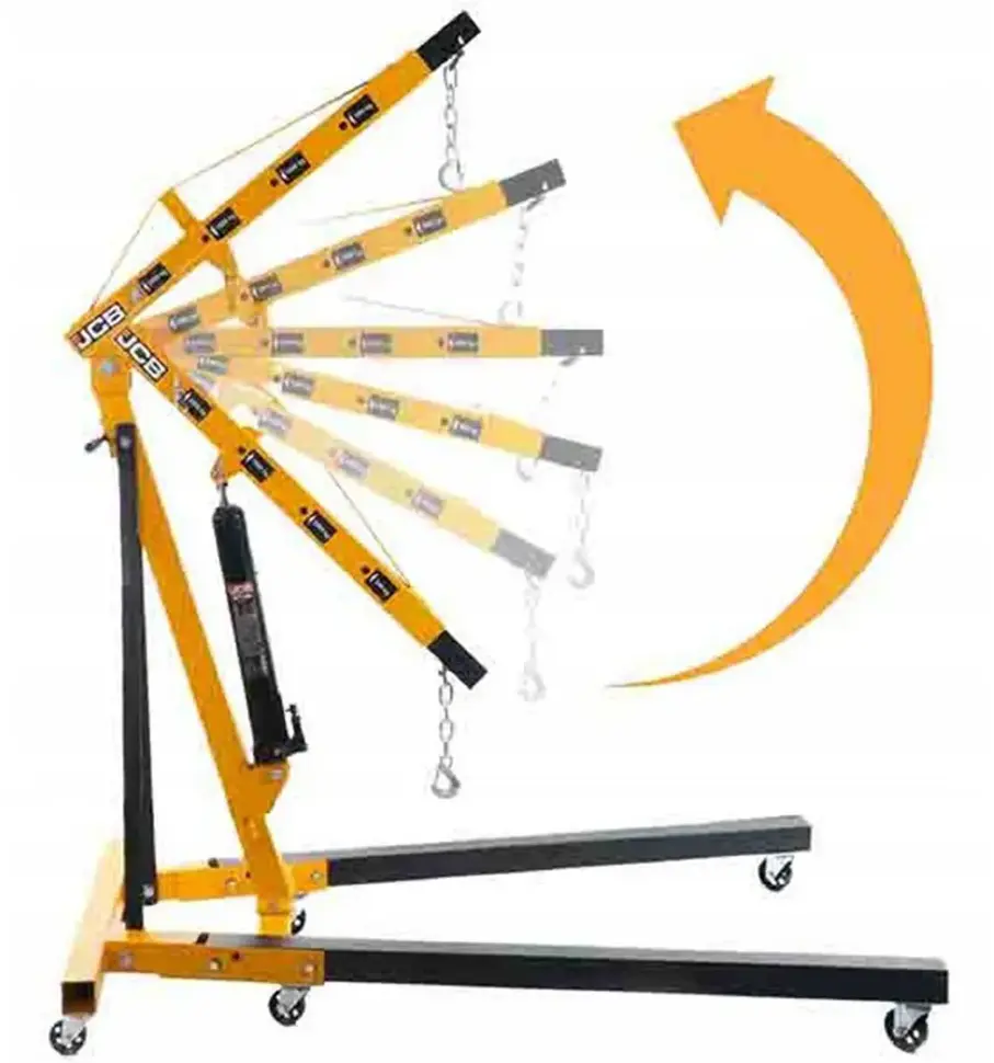 Кран гидравлический 2т JCB JCB-T32002 предназначен для подъёма и перемещения тяжёлых грузов массой до 2000 кг. Используется в автосервисах, на складах и в мастерских для установки и снятия двигателей, агрегатов и других крупногабаритных деталей. Складная конструкция облегчает хранение и транспортировку.