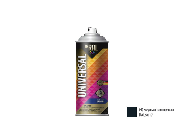 Краска универсальная, черный глянец, 400мл, 9017, INRAL 26-7-6-004