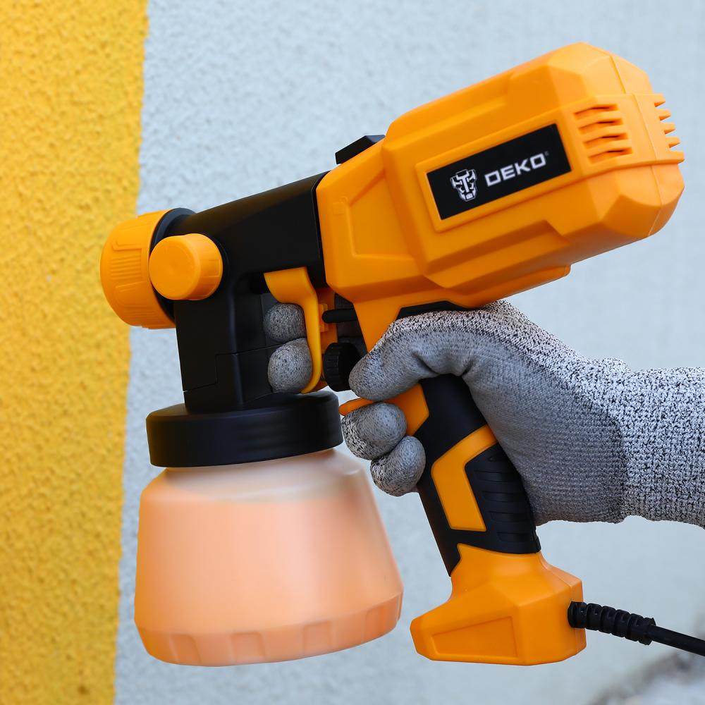 - Сетевой краскопульт DEKO SG500D предназначен для эффективного и равномерного нанесения лакокрасочных материалов в условиях бытового использования. Благодаря мощности 500 Вт он обеспечивает стабильную работу, позволяя наносить до 700 мл краски в минуту, что делает его удобным решением для окраски стен, мебели, заборов и других поверхностей без необходимости прибегать к профессиональным услугам.