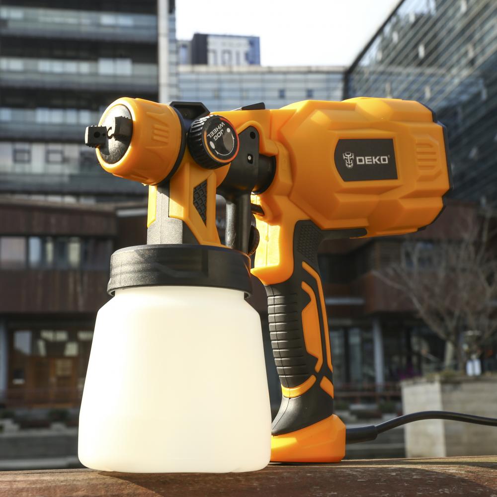 Краскопульт электрический DEKO DKSG55K1 HVLP (550W, 800 мл) используется для обработки поверхности водно-меловыми и водно-известковыми составами при строительно-отделочных работах, при опрыскивании и побелке садов, дезинфекции помещений.
