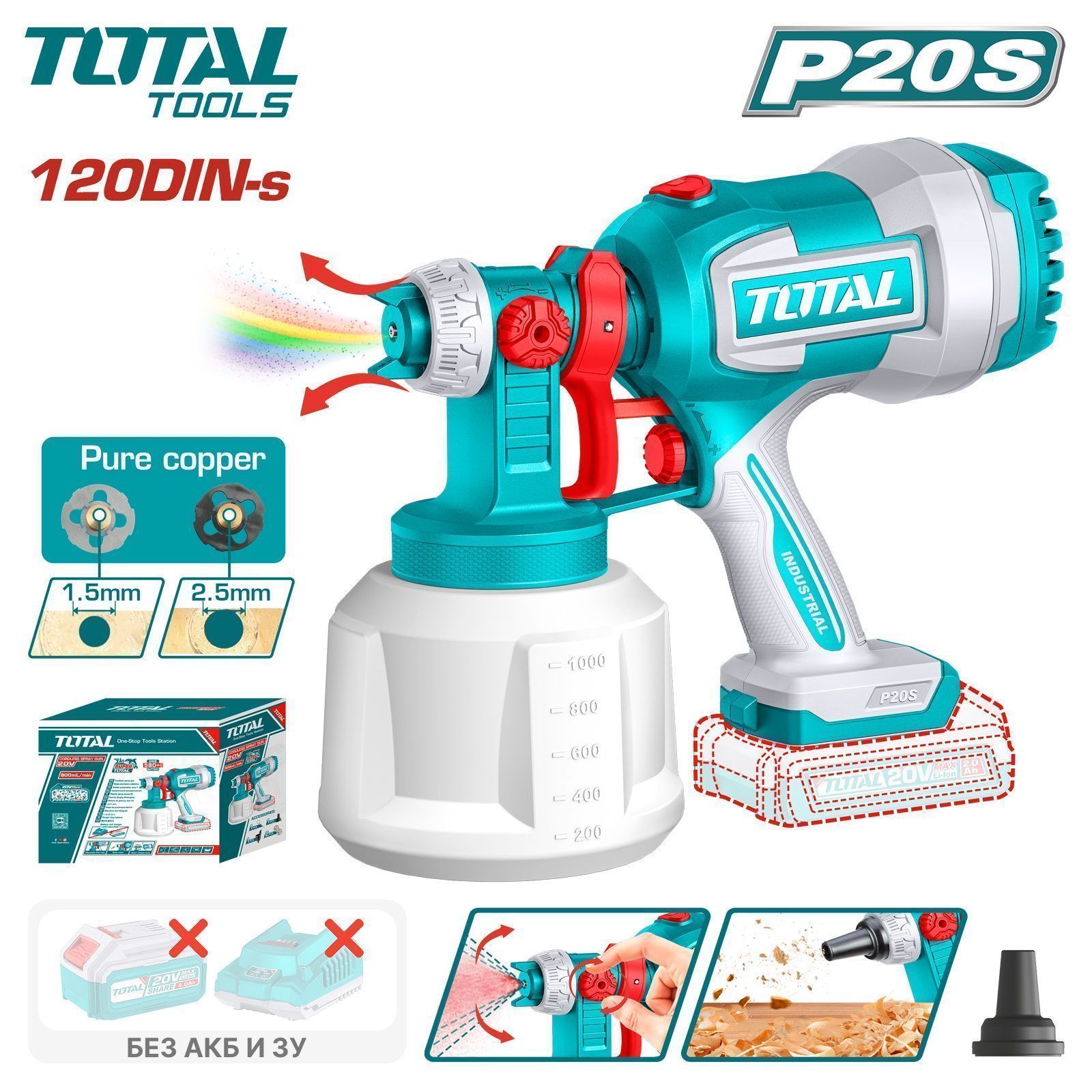 Краскораспылитель аккумуляторный, 20В, БЕЗ АКБ 0,1-0,2 бар, макс. вязкость-100 DIN, объем бачка 800 мл, DYLLU DTSU3066