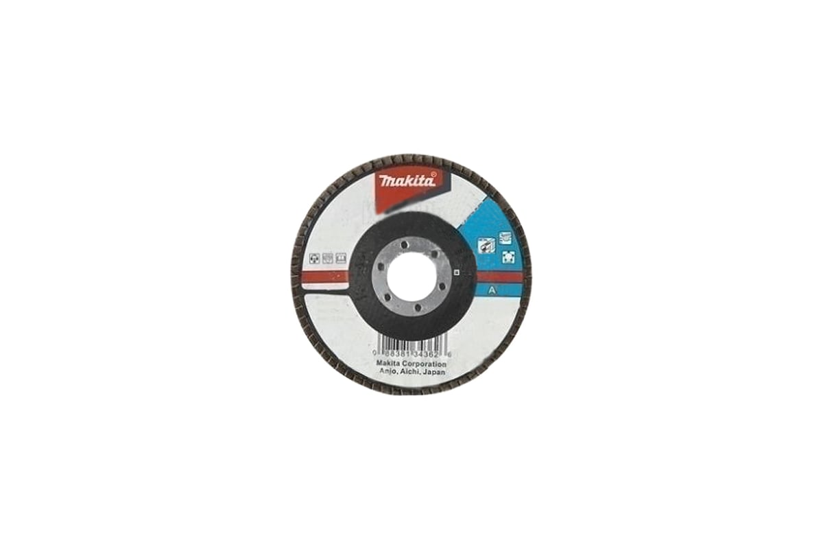 Лепестковый шлифовальный диск Makita для обработки стали, цветных металлов, пластика и дерева. Диаметр 125 мм.К120. Посадочное отверстие 22.23 мм