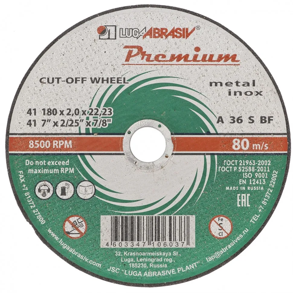 Технические характеристики:Тип: круг отрезной по металлу и нержавеющей стали;Применение: в УШМ соответствующего типоразмера;Абразивный материал: монокорунд (монокристаллический корунд);Твердость связки: T - весьма твердая;Связка: BF-бакелитовая с армированием;Размер абразивного зерна: P46;Толщина, мм: 1.6;Диаметр круга, мм: 150;Посадка, мм: 22.2;Оборотов в минуту (RPM): 10 200;Максимальная окружная скорость, м/с: 80---