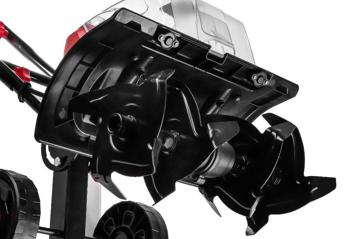 - В отличие от моделей с двигателем внутреннего сгорания аккумуляторный культиватор работает без выхлопных газов — подходит для работы в парниках и теплицах;