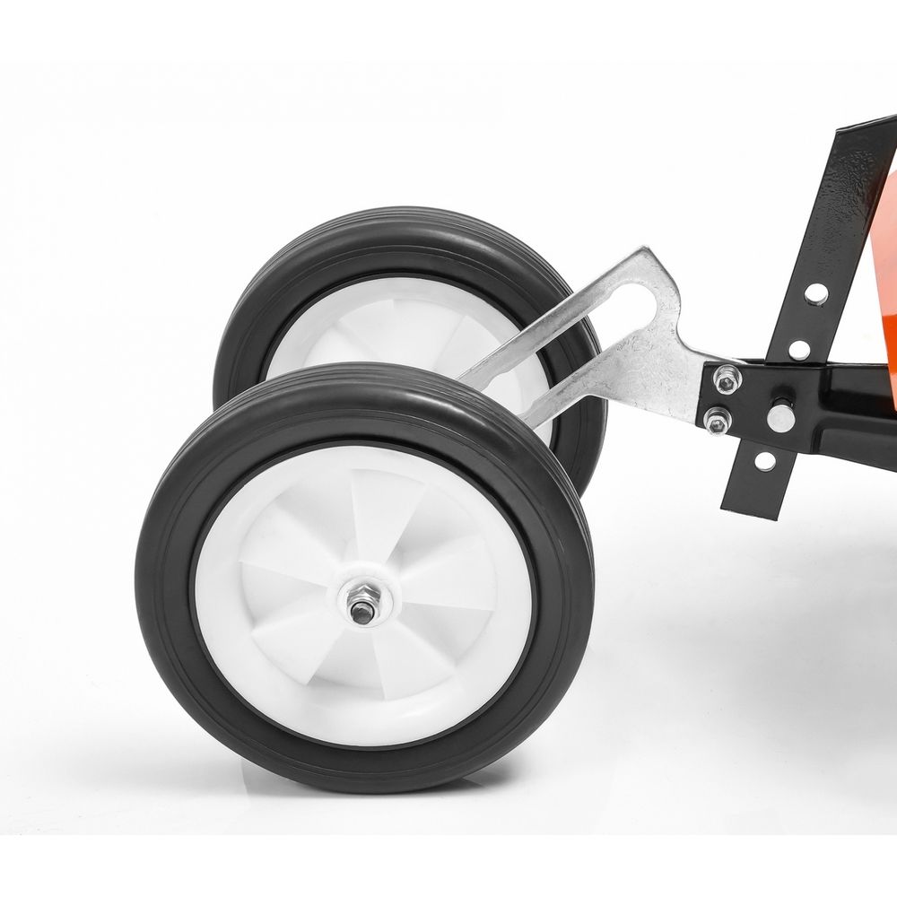✔ Двойные транспортировочные колеса обеспечивают дополнительную устойчивость агрегата при перемещении к рабочей зоне. Конструкция опоры позволяет за считанные секунды переключаться между рабочим и транспортировочным положениями