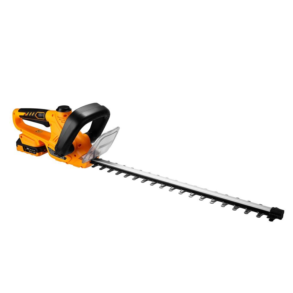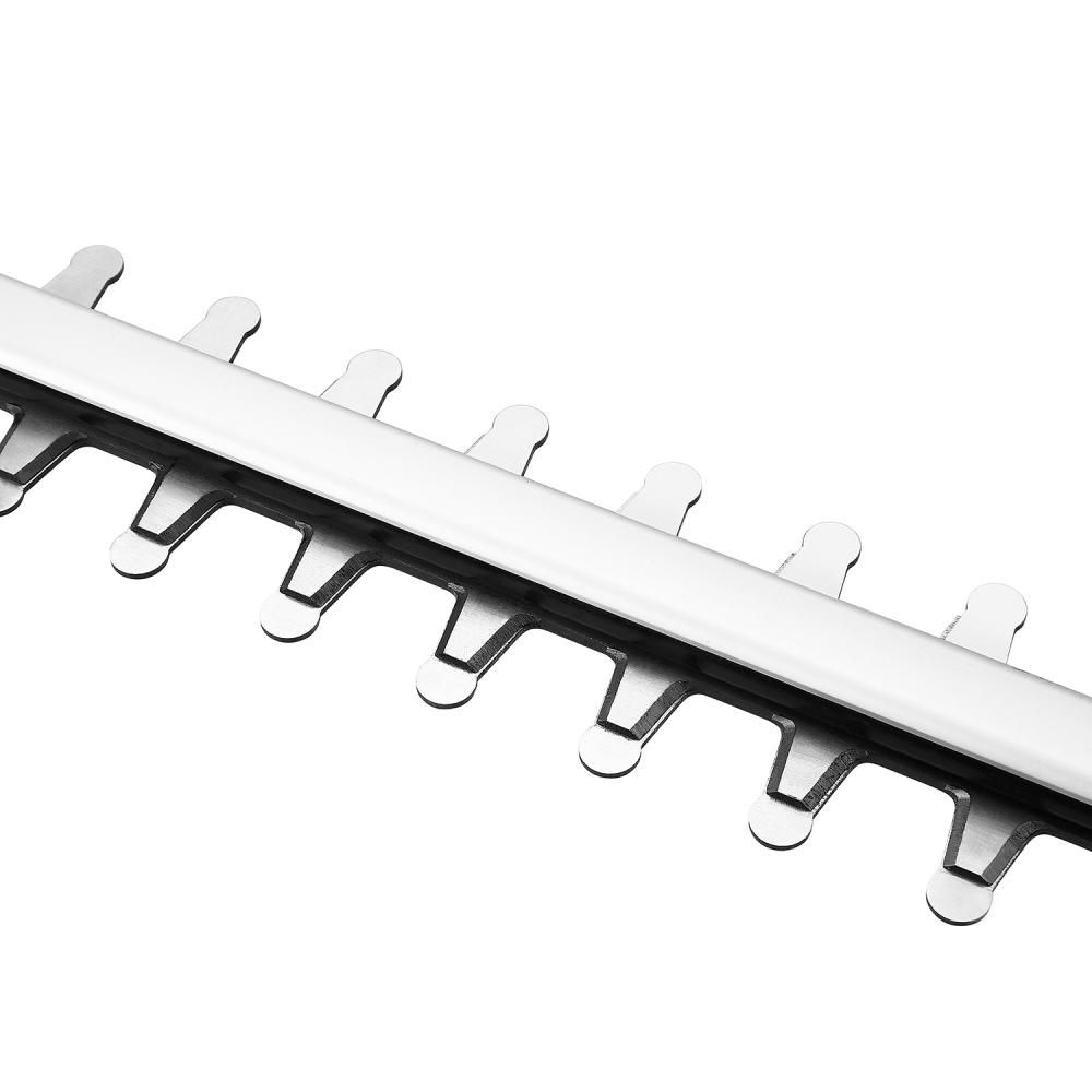 - Поворотная рукоятка обеспечивает комфортное удержание инструмента в любом положении, что особенно важно при длительной работе. Двусторонний нож упрощает обработку сложных участков, а отсутствие проводов дает свободу движения. Это делает его идеальным для стрижки живых изгородей, формирования кустов и удаления сухих веток.