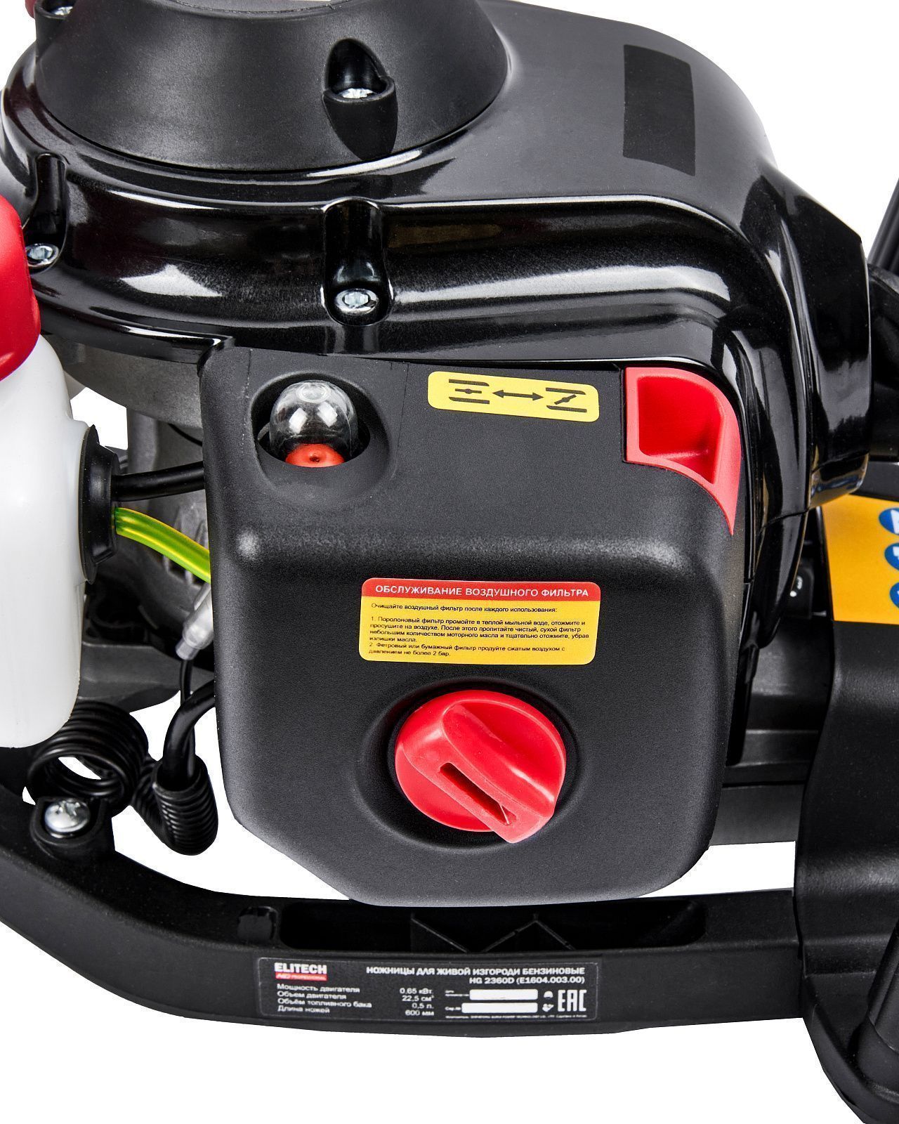 Бензиновый кусторез HG 2360D ELITECH HD для живой изгороди мощностью 0,9 л.с. (0,65 кВт), предназначен для стрижки кустарников и живых изгородей, для придания форм садовым растениям.