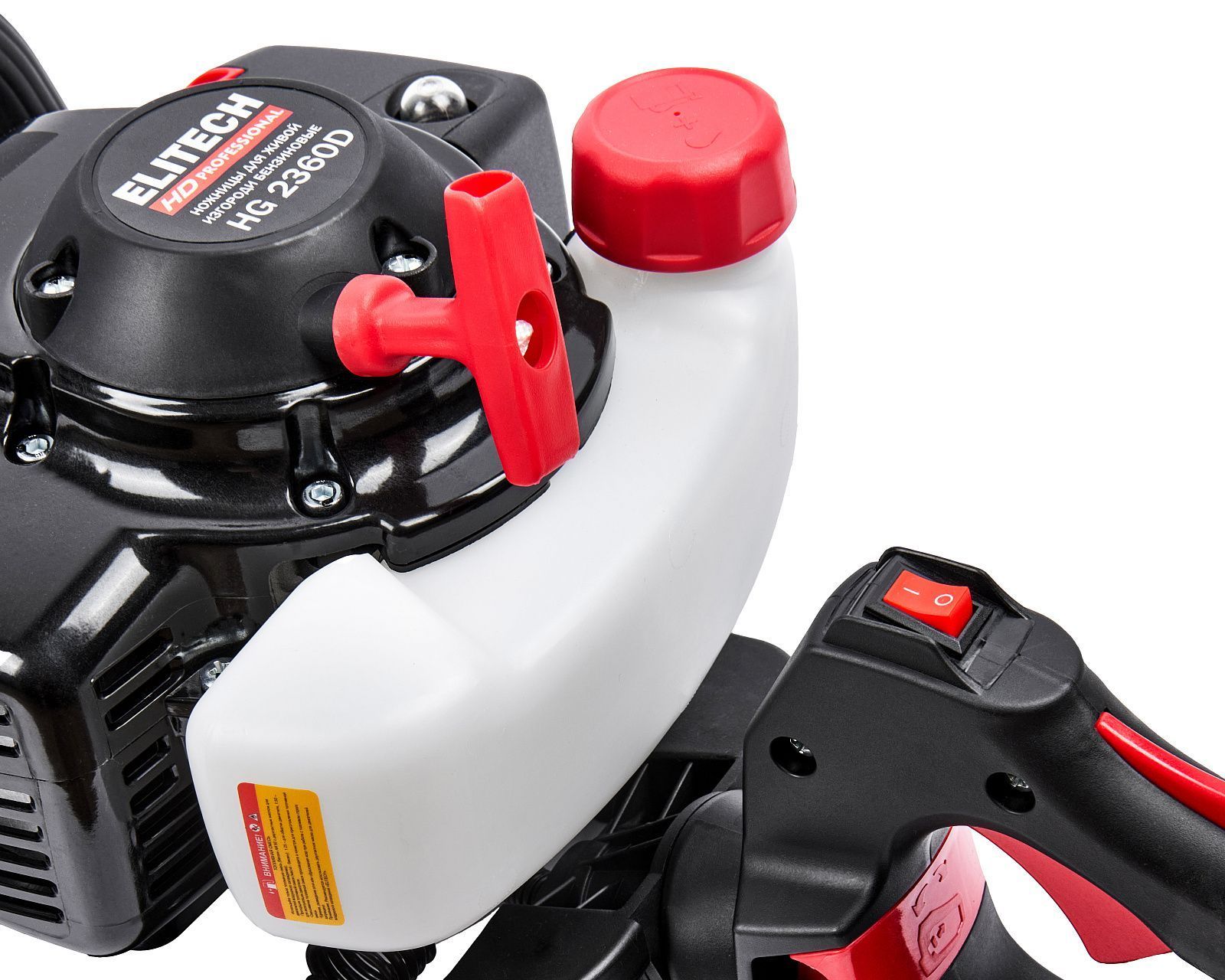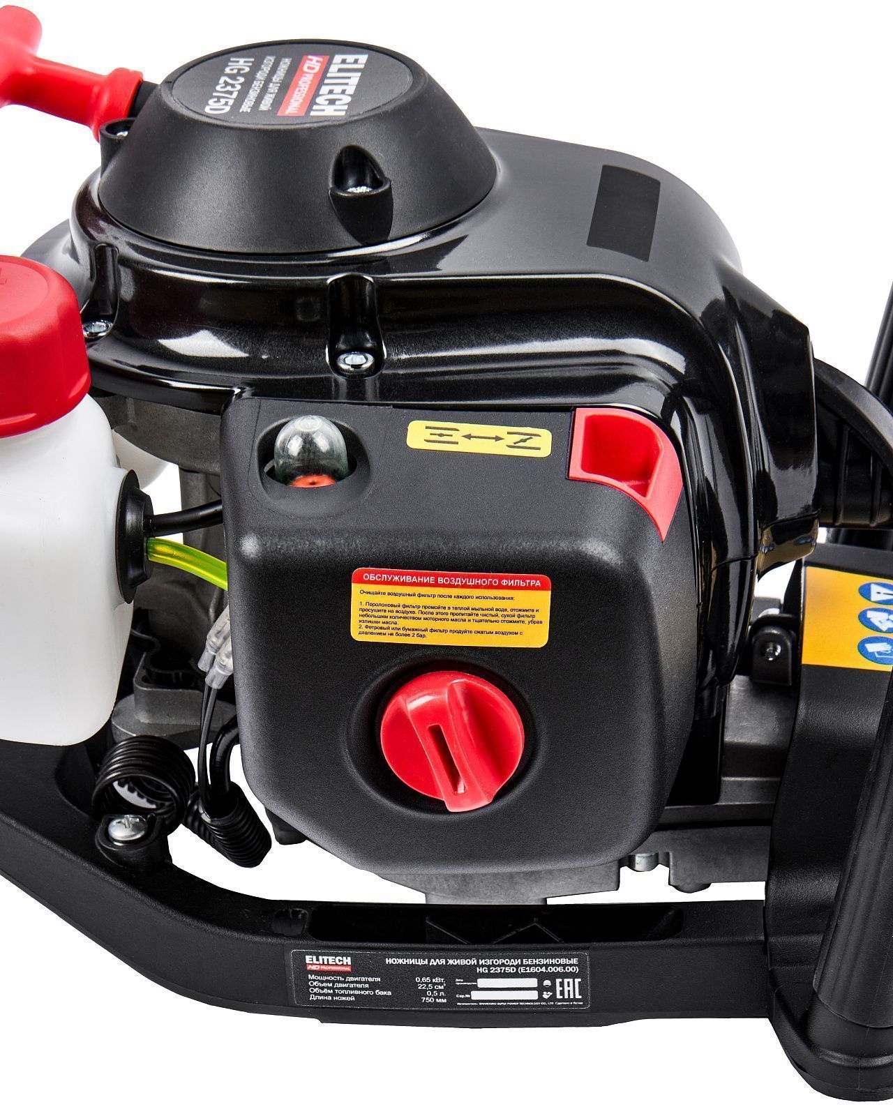 Бензиновый кусторез HG 2375D ELITECH HD для живой изгороди мощностью 0,9 л.с. (0,65 кВт), предназначен для стрижки кустарников и живых изгородей, для придания форм садовым растениям.