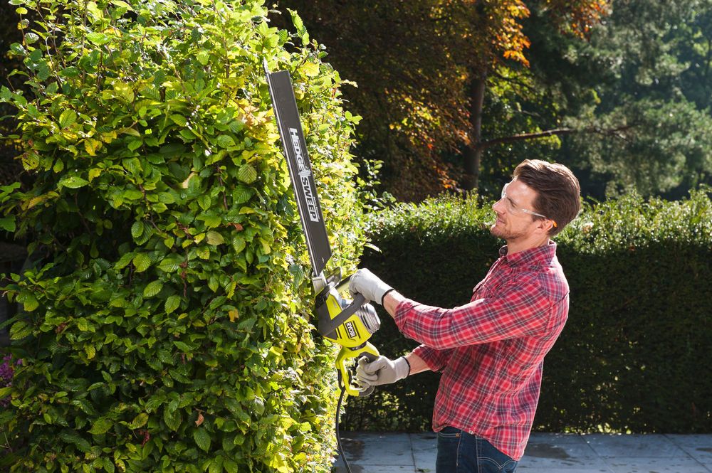 - Кусторез электрический Ryobi RHT8165RL используется для аккуратной стрижки живых изгородей.