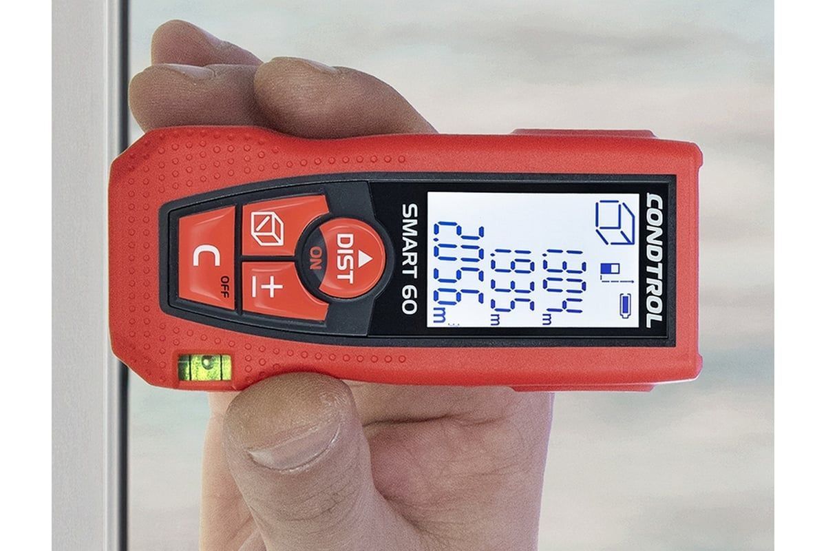 CONDTROL SMART 60 – лазерная рулетка, обладающая ударопрочным корпусом и оптикой нового поколения, благодаря которой можно работать в любых условиях освещения. CONDTROL SMART 60 позволяет проводить замеры как на улице, так и в помещениях на расстоянии до 60 м.