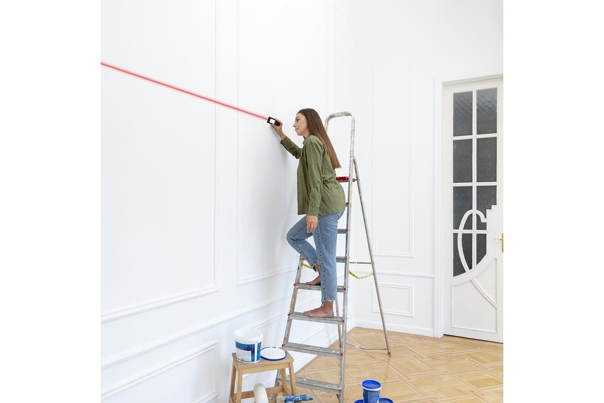 Сделав всего два замера, пользователь может определить длину отрезка, даже если этот отрезок проходит сквозь здания или препятствия (стена, деревья, забор и т. д.).