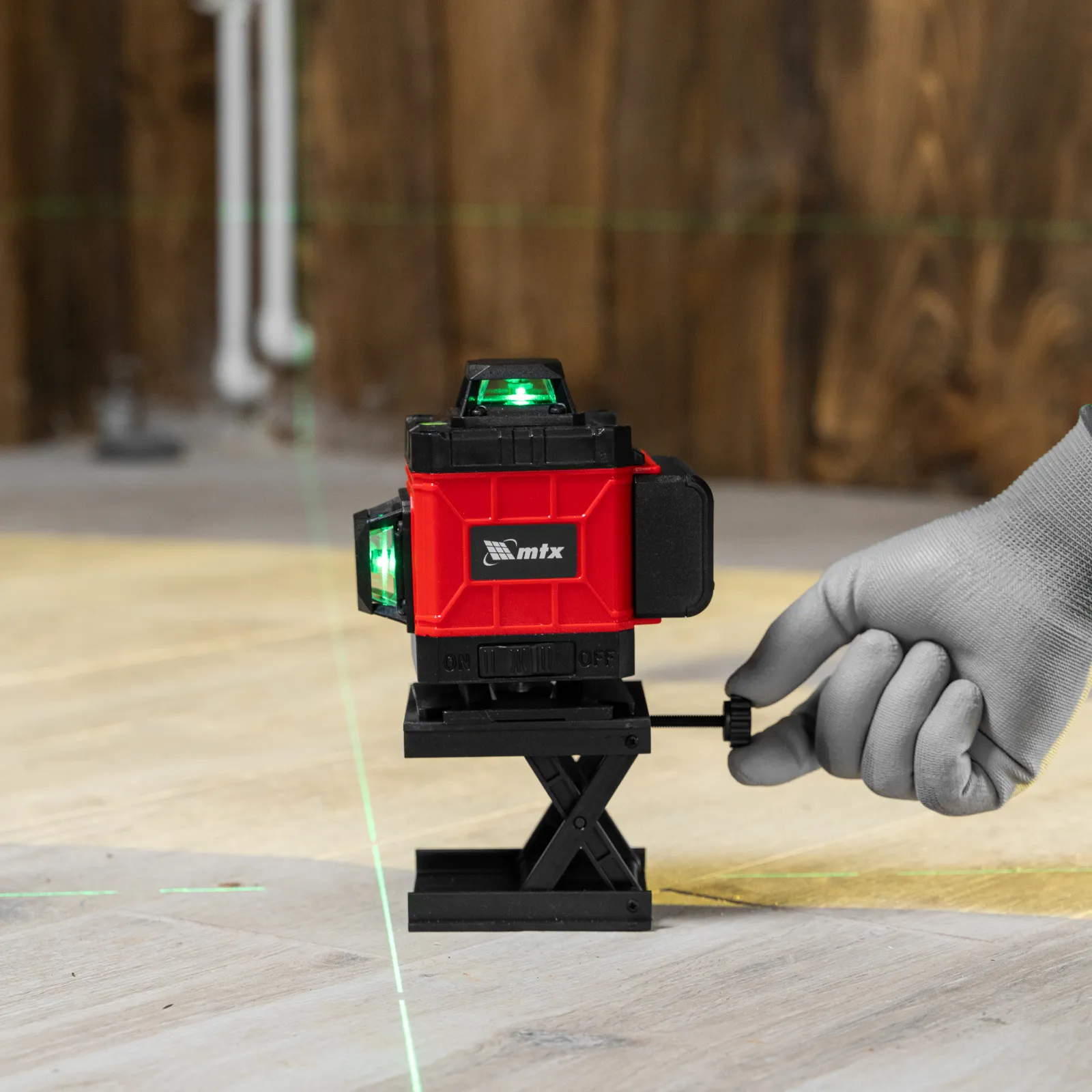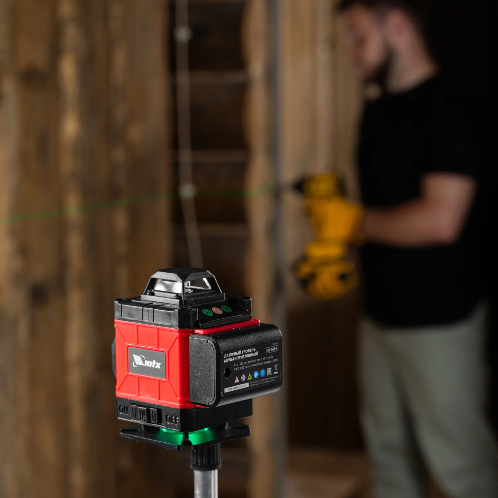 Мультипризменный лазерный уровень MTX ML 360-4 Pro SET состоит из 2 частей, работает от аккумулятора Li-Ion емкостью 3 А·ч и проецирует горизонтальную и вертикальную линии на расстояние до 30 метров при помощи зеленых лучей с длиной волны 520 нм. Позволяет выравнивать предметы и проводить разметку поверхностей. Точность построения линий составляет ±0,3 мм/м, угол развертки лучей — 360°, что позволяет эффективно решать поставленные задачи. Лазерный уровень значительно упрощает проведение работ по отделке помещений, установке окон, шкафов и т.д. Уровень можно использовать как в помещении, так и на улице (предусмотрен специальный режим OUTDOOR).