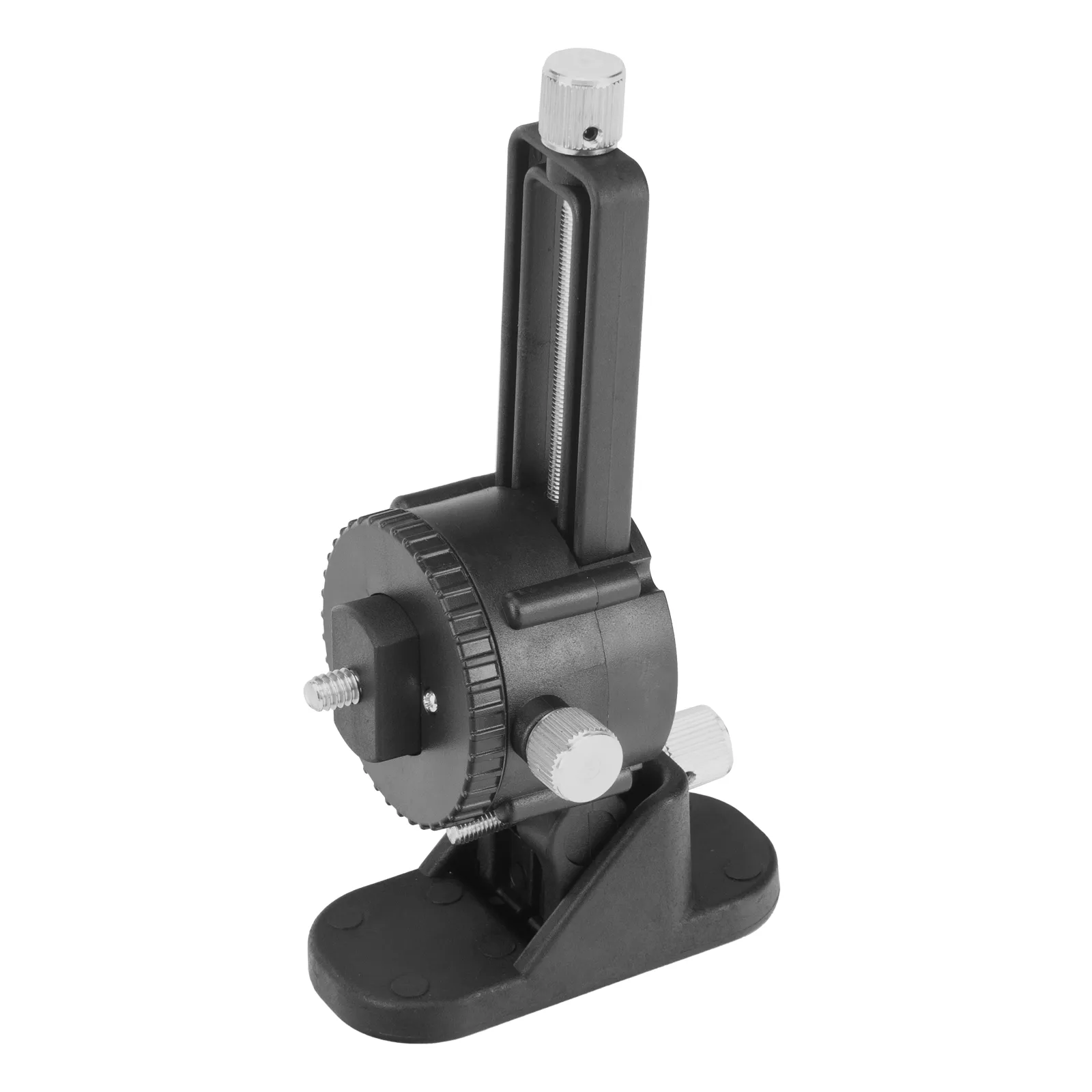 - Удобная регулировка по высоте — при помощи подъемной платформы можно изменить положение уровня по вертикали, штатив с регулируемыми ножками, металлическим подъемным механизмом и винтом точной настройки позволяет установить прибор на высоте от 440 до 1200 мм.