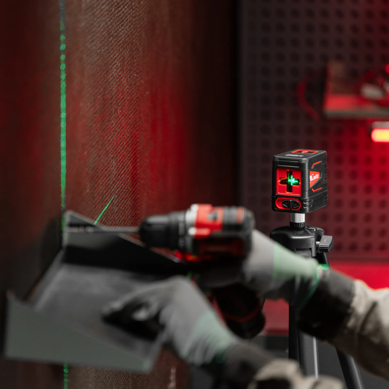 Лазерный уровень MTX QBC GREEN Pro SET поставляется со штативом, работает от батареек AA и проецирует горизонтальную и вертикальную линии на расстояние до 20 м при помощи зеленых лучей длиной 520 нм. Предназначен для проведения разметки поверхностей и выравнивания предметов при проведении строительных и ремонтных работ. С его помощью можно выполнить внутреннюю отделку помещений, смонтировать подвесные потолки, установить розетки и выключатели, шкафы и стеллажи, повесить полки и картины и т.д. Погрешность составляет ±0,3 мм/м, что обеспечивает высокую точность разметки. Прибор можно использовать не только в помещении, но и на улице — зеленый луч хорошо виден даже под открытым небом.