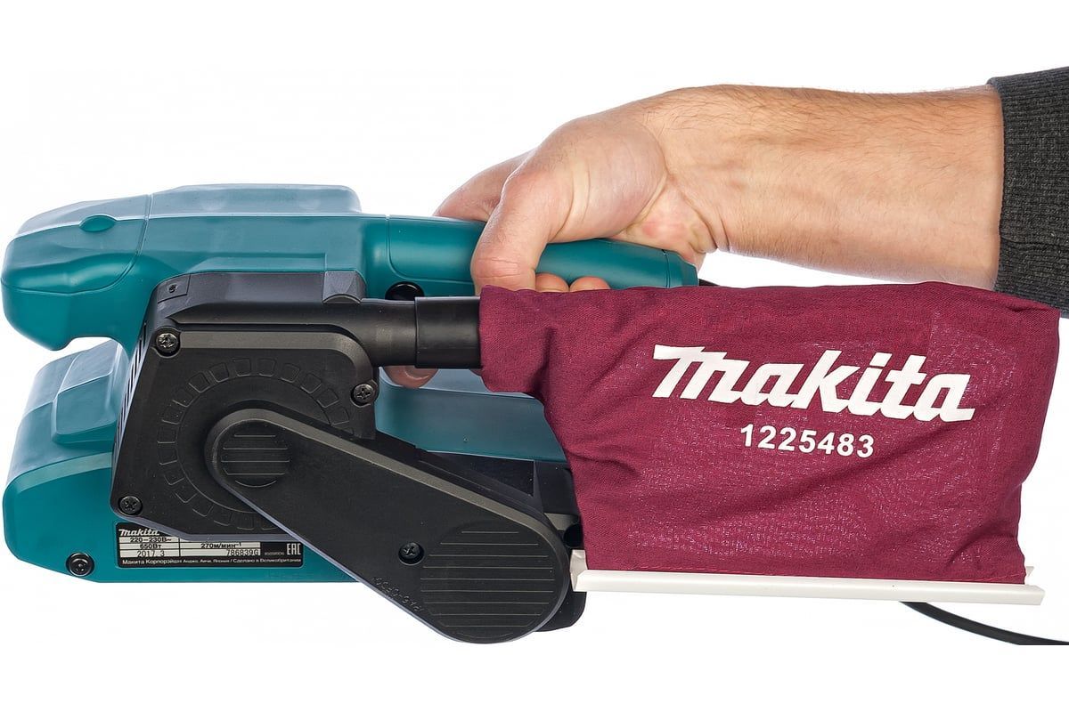 Ленточная шлифмашина Makita 9910 предназначена для шлифования и выравнивания поверхностей. Небольшие размеры и сочетаниче хороших технических характеристик увеличивают комфорт во время работы. Замена ленты происходит теперь одним нажатием на специальный рычаг, который находит сбоку на корпусе инструмента. Выключатель расположен на ручке шлифмашины и оснащен фиксатором для непрерывной работы. Большой пылесборный мешок идет в комплекте.