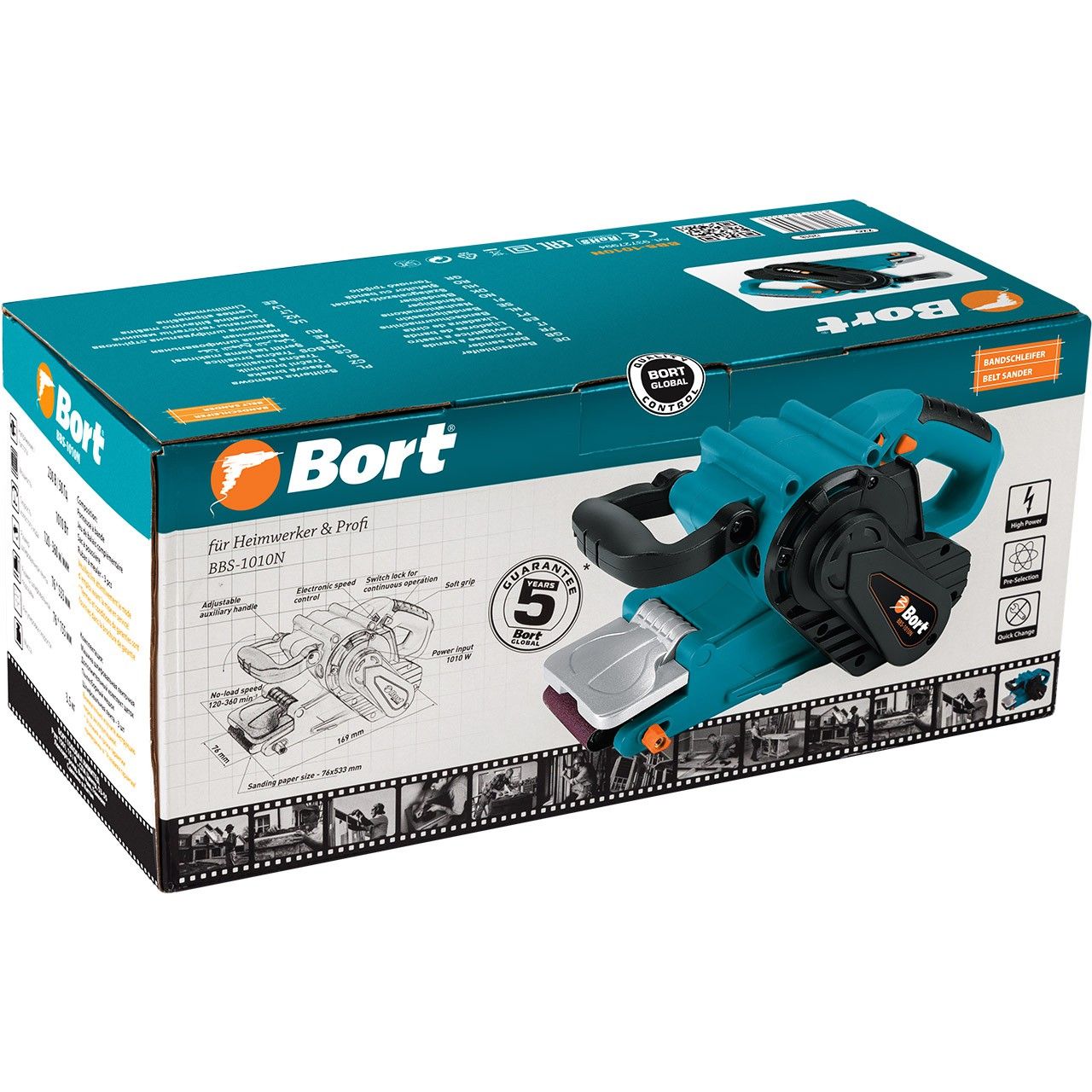- Ленточная шлифовальная машина Bort BBS-1010N - отличный инструмент для столяров для шлифования деревянных поверхностей, но так же легко он справится и со шлифованием различных металлических поверхностей и заготовок.