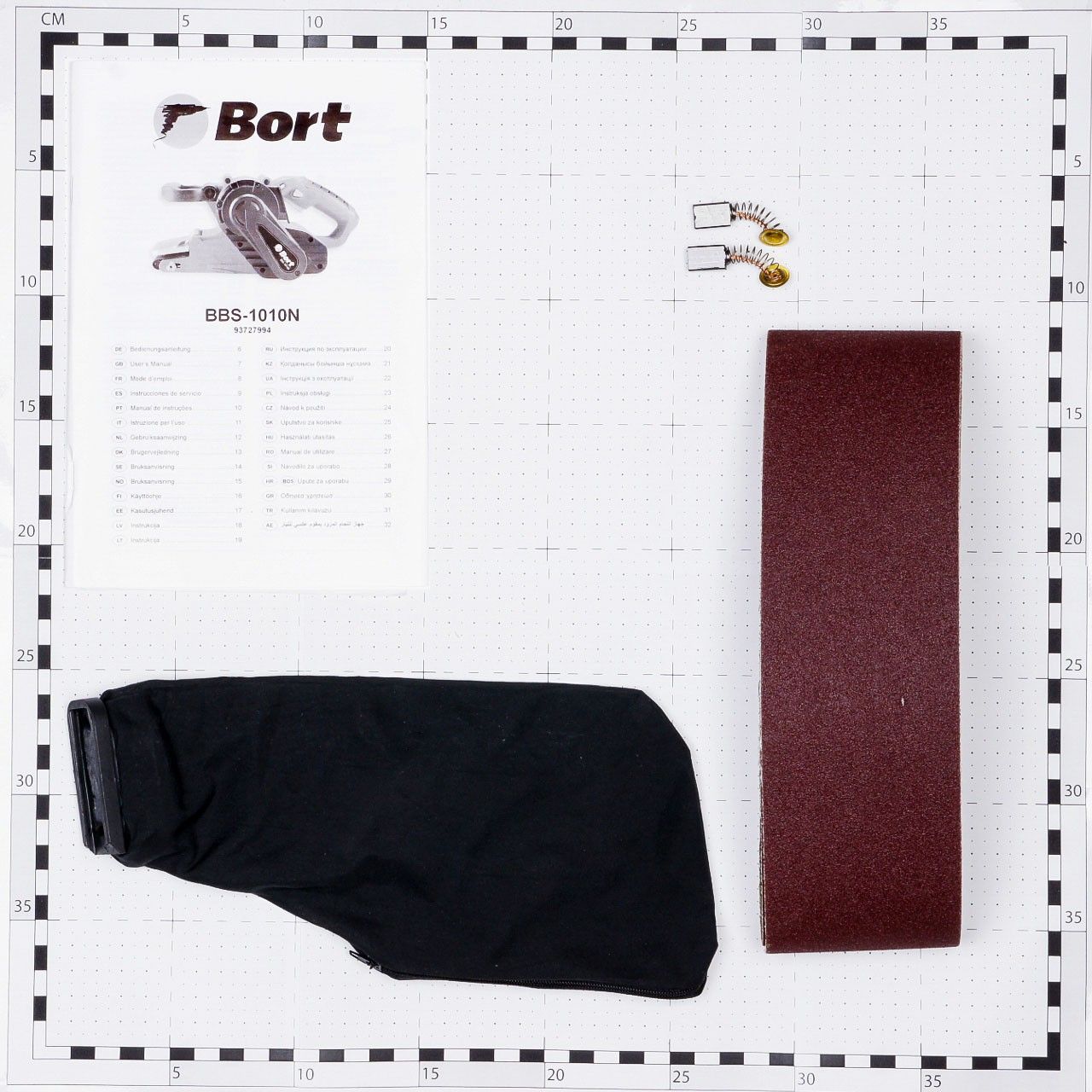 - Шлифовальная машина комплектуется мешком для сбора пыли и шлифовальной лентой.