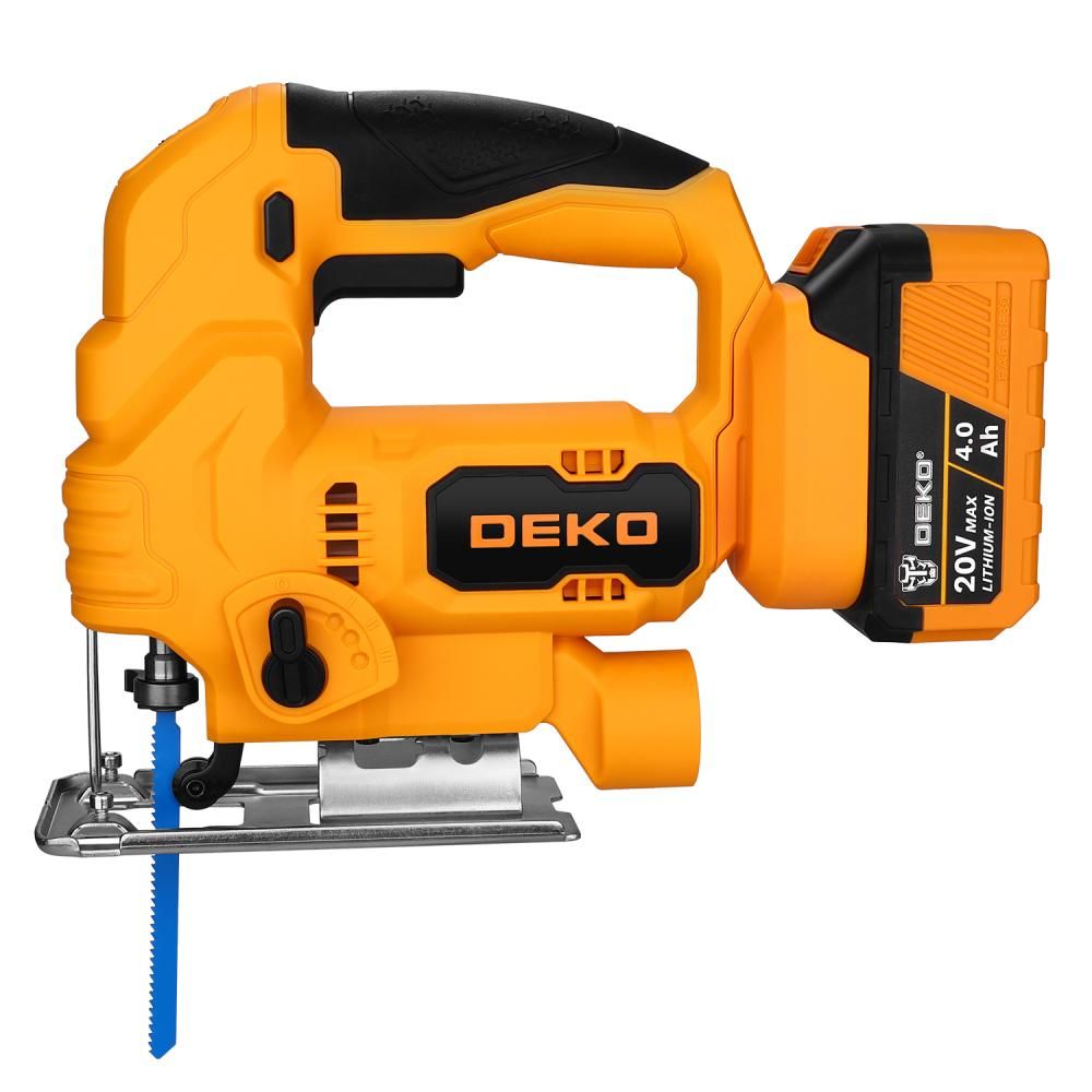 - Лобзик аккумуляторный DEKO DKJS20E, 1x4.0Ah используется для распиливания дерева, металла, пластика, резины при отделочных или ремонтных работах.