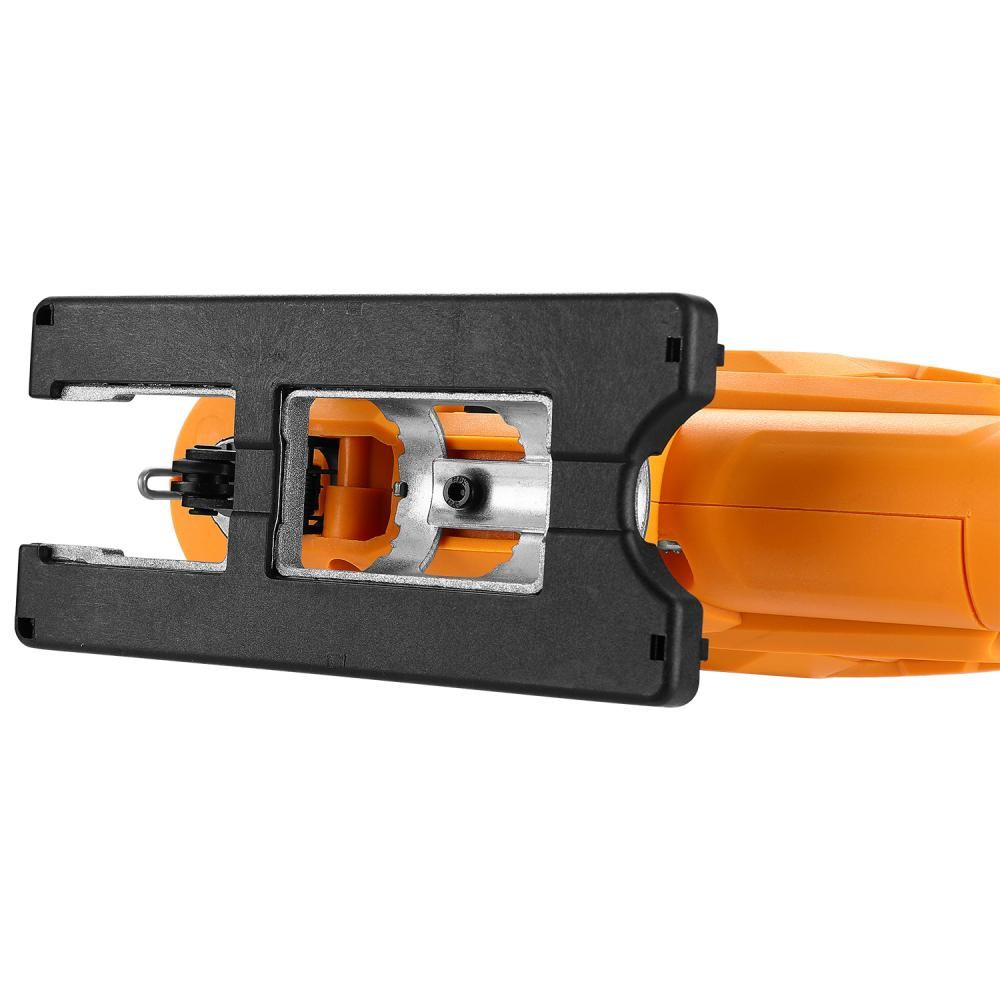 - Инструмент питается от стандартной сети с напряжением 230–240 В и частотой 50 Гц, что делает его совместимым с бытовыми условиями. Эргономичная конструкция позволяет комфортно работать с лобзиком даже в течение длительного времени, а малый уровень вибрации способствует точности реза. Наличие лазерного указателя повышает точность ведения линии реза, особенно при работе с длинными и прямыми участками.
