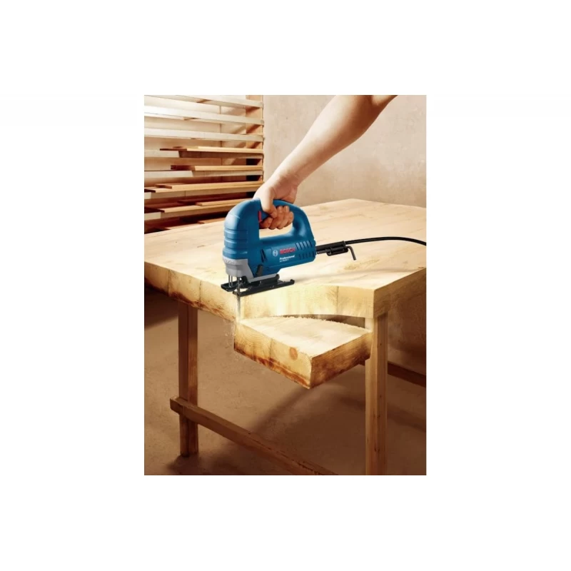 Электрический лобзик Bosch GST 8000 E Professional предназначен для прямого и фигурного распила различных материалов: древесины, металла, пластика и других. Маятниковый ход позволяет оптимально использовать инструмент с различными материалами. Кнопка "Пуск" с функцией акселератора - чем сильнее нажим, тем выше скорость. Есть режим фиксации включенного состояния - для продолжительной работы. Удобная скобовидная рукоятка обеспечивает надежный захват лобзика во время работы.
