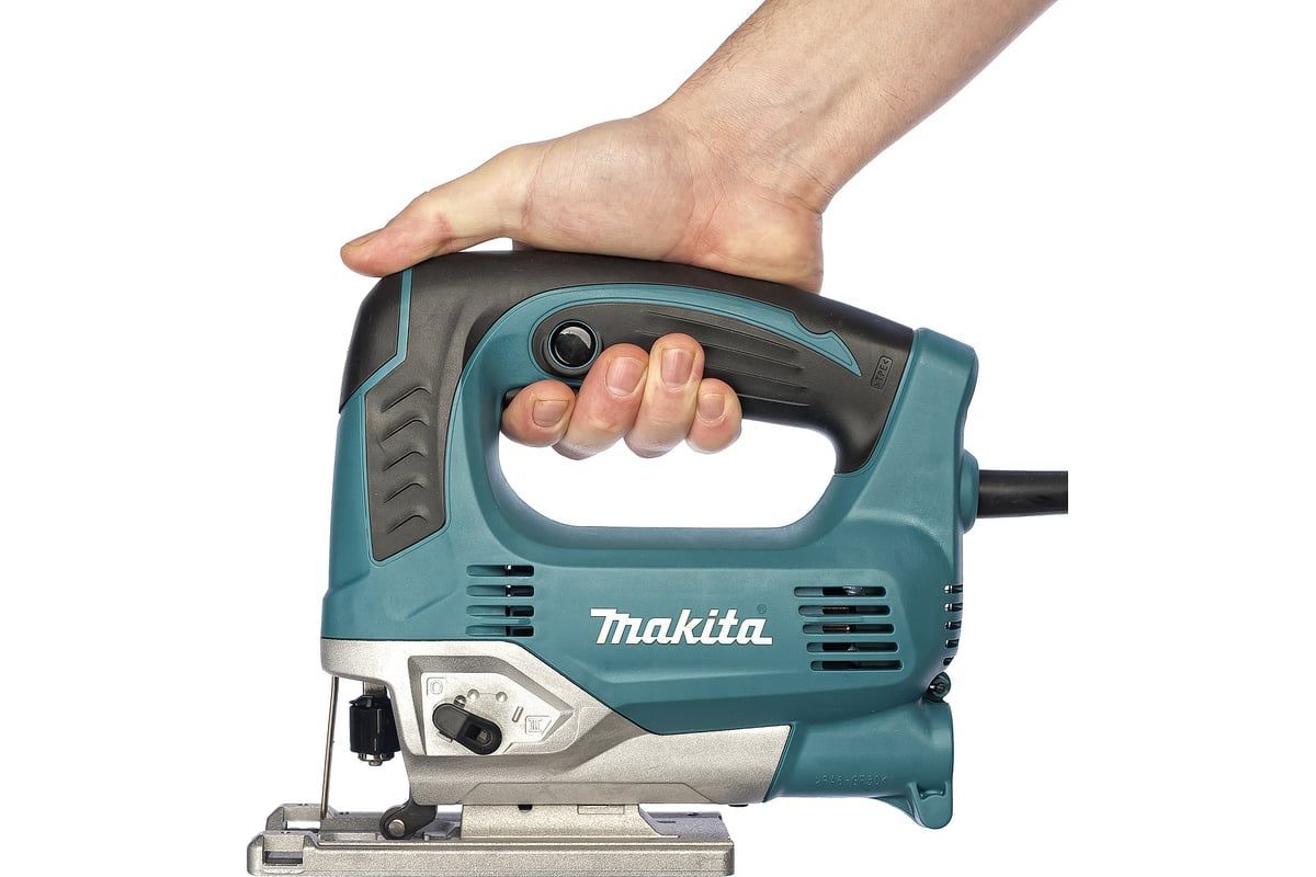 Лобзик Makita JV0600K используется для прямых и фигурных пропилов. Отличная эргономика корпуса и особые нескользящие вставки на рукоятках существенно снижают энергоемкость работы, позволяя долго работать без усталости. Три режима маятникового хода легко переключаются в процессе работы. Подошва может наклоняться до 45о градусов в обе стороны.